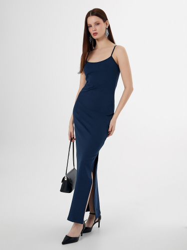 Сарафан имеет прилегающий крой, округлую горловину и аккуратную отделку края горловины и пройм. Разрез в левом боковом шве добавляет свободы движений и лёгкую динамику. Длина макси делает сарафан универсальным вариантом для создания разных образов. Его можно носить самостоятельно или в многослойных комплектах, сочетая с футболками, рубашками или лёгкими джемперами.