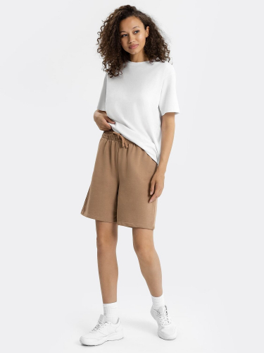 Шорты свободного силуэта из легкого трикотажного футера. Широкий эластичный пояс с тесьмой внутри и декоративными строчками. Есть удобные боковые карманы. Рекомендуем!