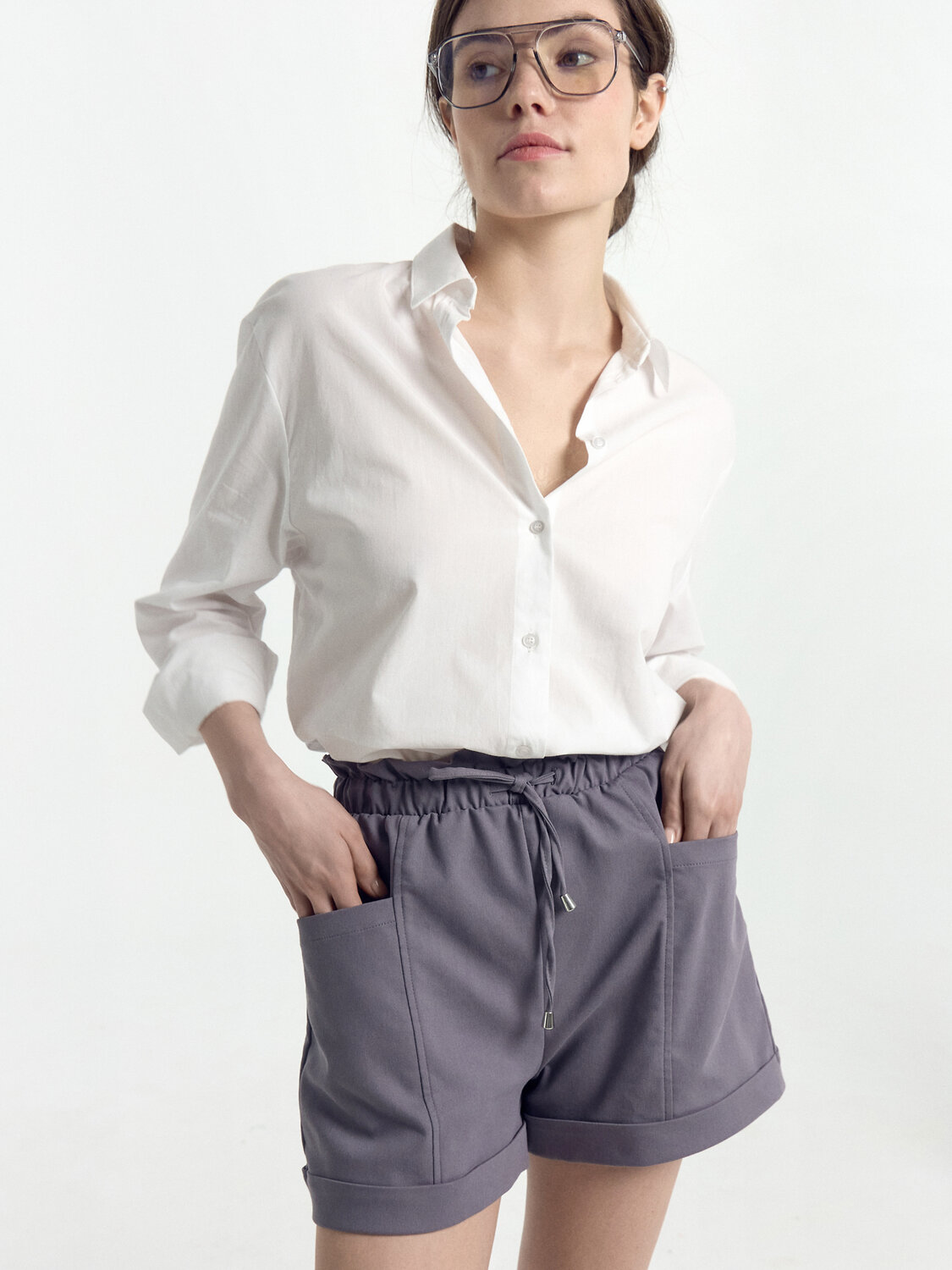 Стильные шорты женские свободного силуэта, чуть расширенного к низу. Выполнены из нежного текстиля, в основе которого хлопок. Линия талии завышена. Передняя часть мини-шортов украшена рельефными швами и функциональными накладными карманами. Пояс с эластичной тесьмой внутри, регулировочным шнурком-завязкой и рюшей по верхнему краю. Красивые и невероятно комфортные — лучший выбор для жаркого летнего сезона. Дополнить можно верхом на свой вкус из линейки базовой одежды для женщин. Рекомендуем!