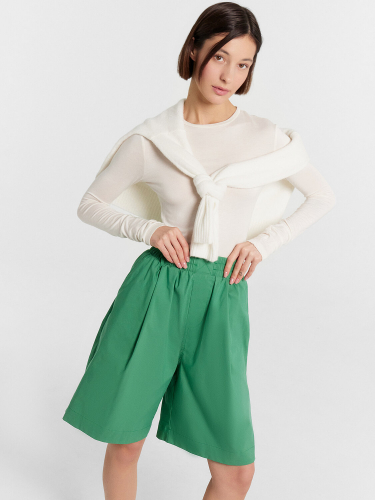 Шорты женские из ткани, с посадкой на линии талии.