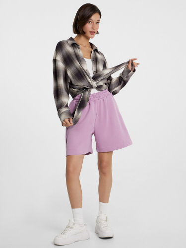 Шорты прямые свободные, длиной выше колен.