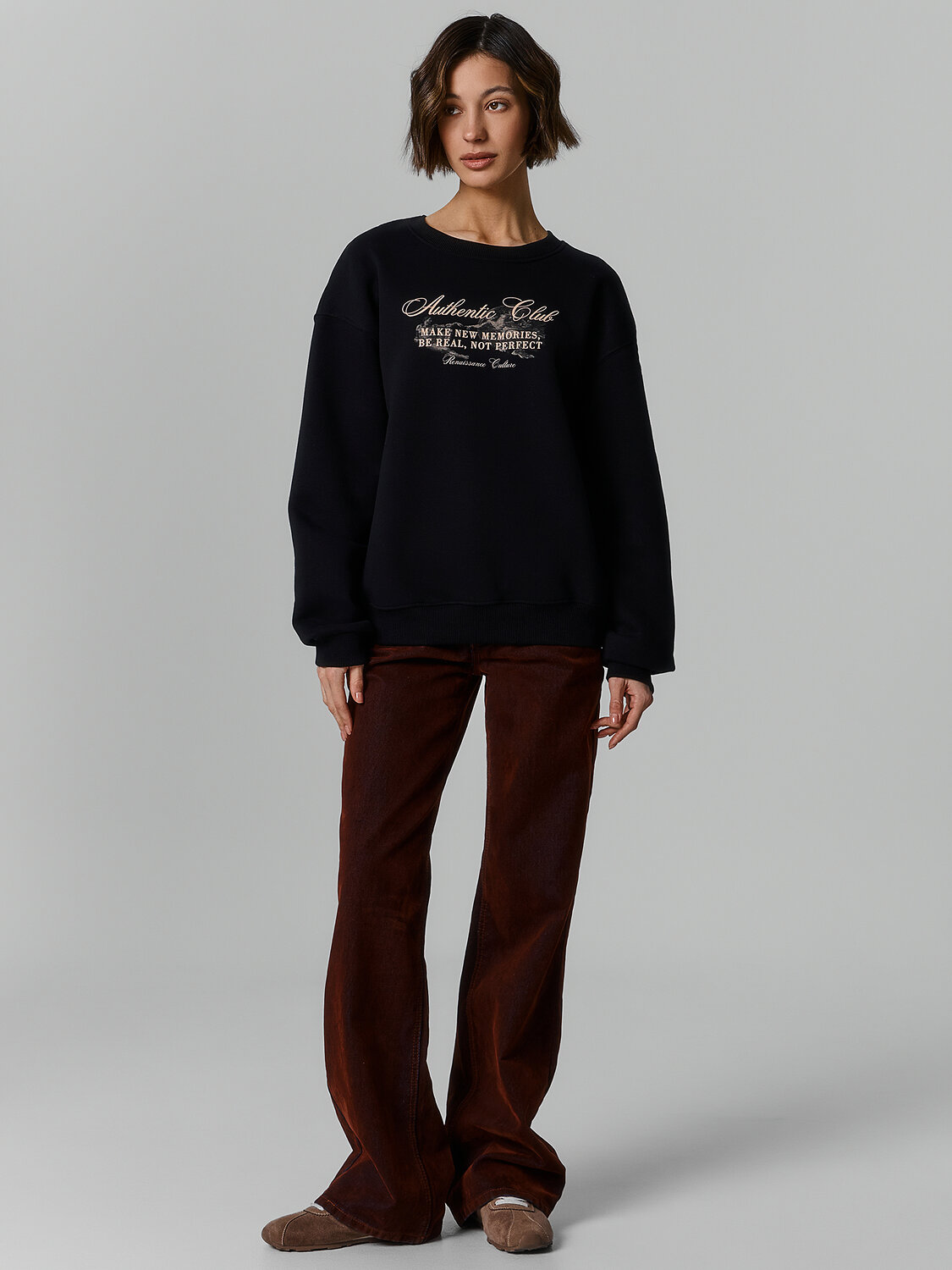 BASIC+ Свитшот женский свободного силуэта. Перед и спинка цельнокроеные.
