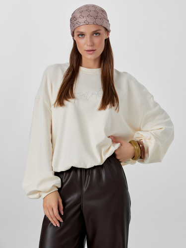 Бежевый женский свитшот — это уют и элегантность в вашем гардеробе. Модель свободного кроя идеально сочетается с высокими брюками или юбками, создавая модный силуэт. Свитшот выполнен из плотного хлопкового футера, который сохраняет тепло, оставаясь мягким и дышащим.
