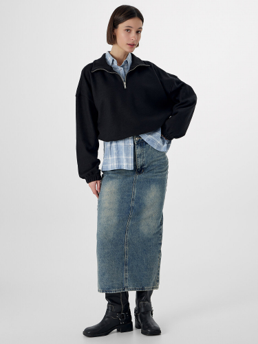 Круглая горловина с воротником-стойкой и длинные рукава с манжетами на эластичной тесьме надежно защищают от холода. Короткая металлическая молния, расположенная от линии груди до горла, позволяет легко регулировать воротник и добавляет практичности.