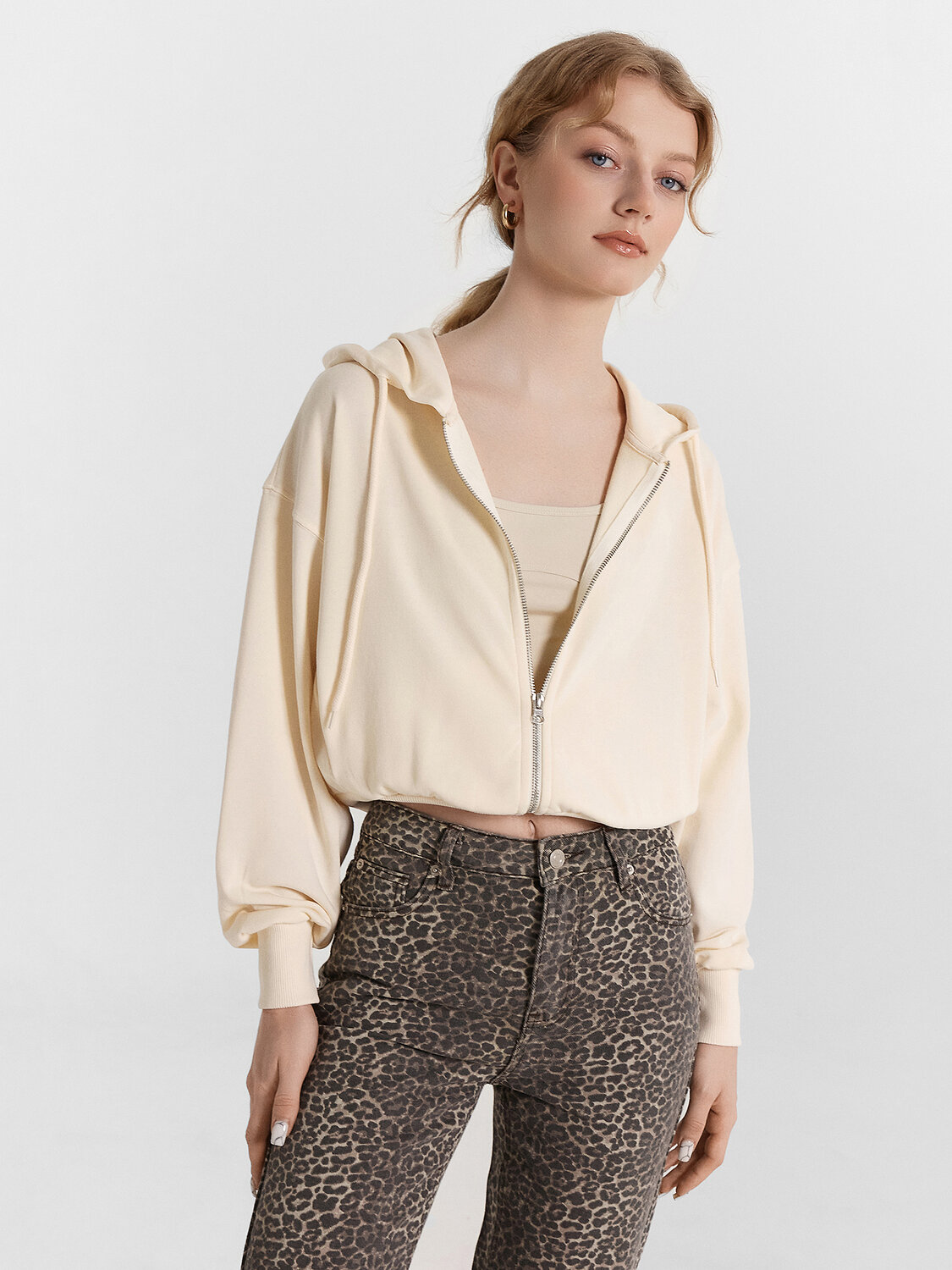 Эта укороченная женская толстовка станет стильным элементом вашего гардероба. Модель свободного силуэта с капюшоном на кулиске создаст современный и непринуждённый образ. Центральная застежка на молнию обеспечивает практичность и удобство, а длинные рукава с манжетами из рибаны добавляют уют. Спущенное плечо и боковые карманы добавляют функциональности и стиля. Изделие выполнено из футера без подчеса, что обеспечивает мягкость и комфорт при носке. Эта толстовка легко сочетается с различными элементами гардероба, создавая стильные и удобные образы на каждый день.
