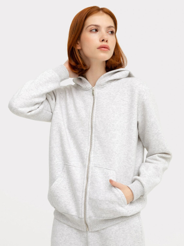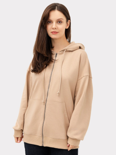 Комфортная и уютная женская толстовка в спортивном стиле. Выполнена из футера с теплым и нежным подчесом. Силуэт свободный – оверсайз, длина до середины бедер. Спущенная линия плеча и углубленная пройма дарит свободу движений. Рукава длинные и свободные, с манжетами. Капюшон просторный, есть удобный карман-кенгуру. Спереди толстовка застегивается на молнию. Рекомендуем!