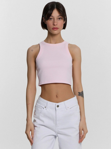 Топ женский прилегающего силуэта из трикотажного полотна рибана. Горловина круглой формы.