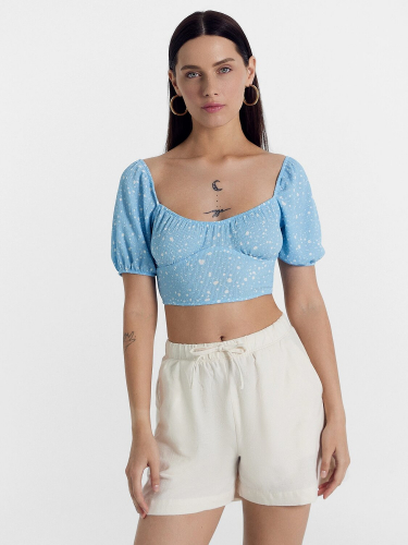 Топ женский укороченный из ткани рашель с рукавами.