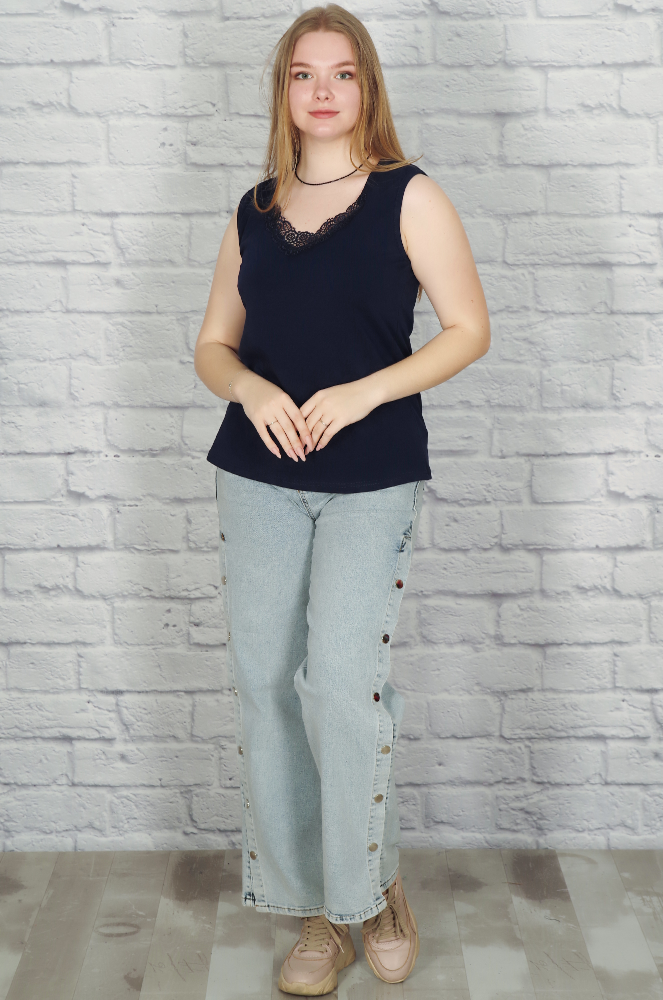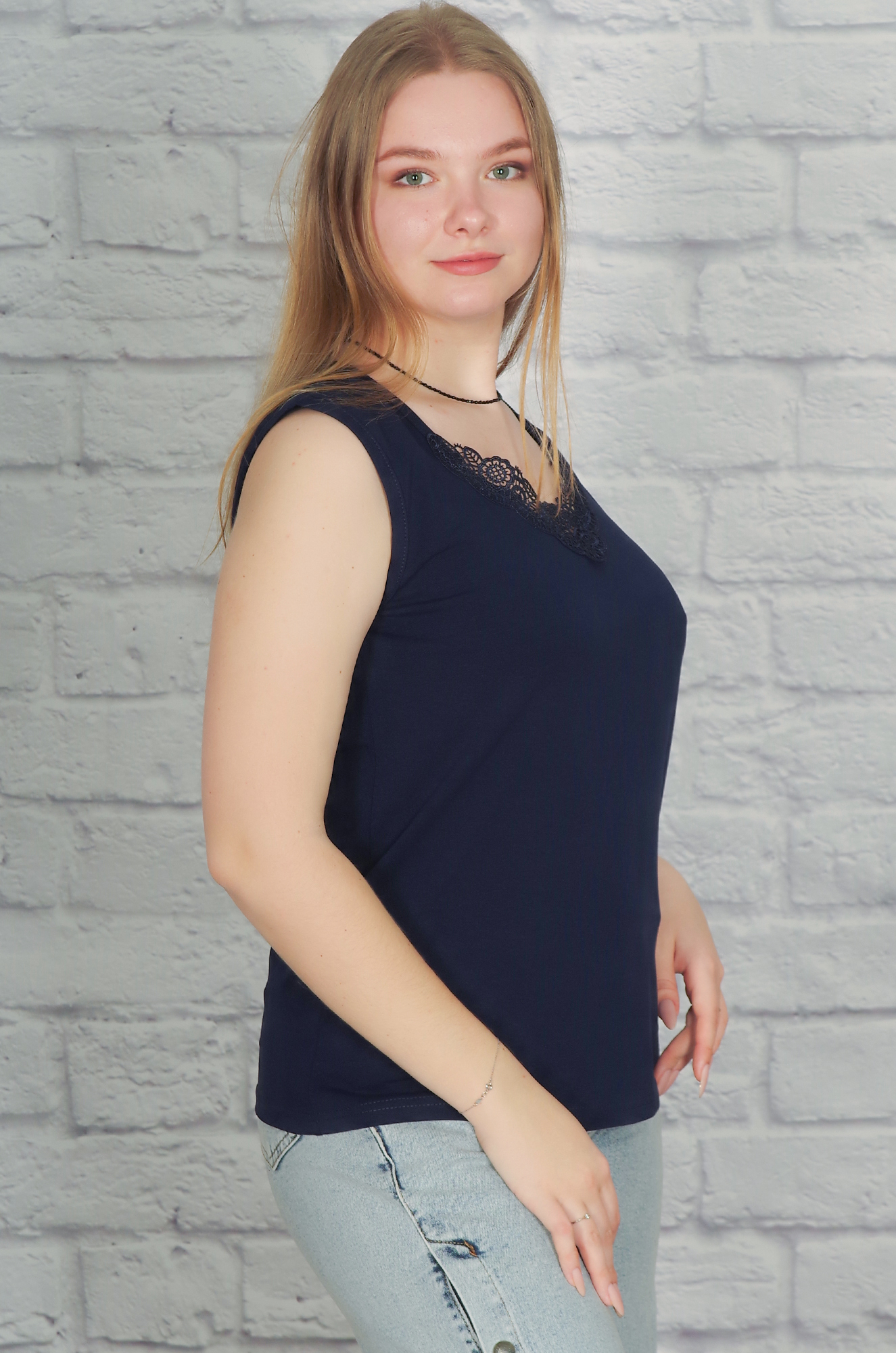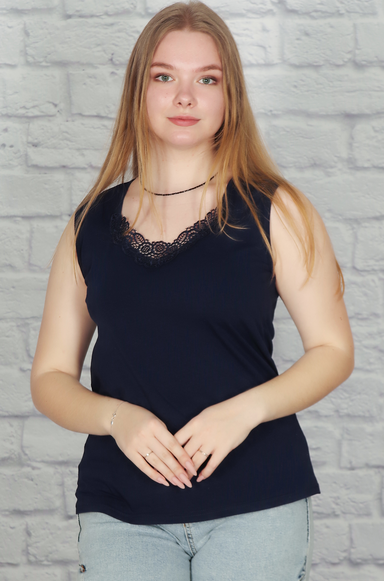 Майка с кружевом (тёмно-синий)
