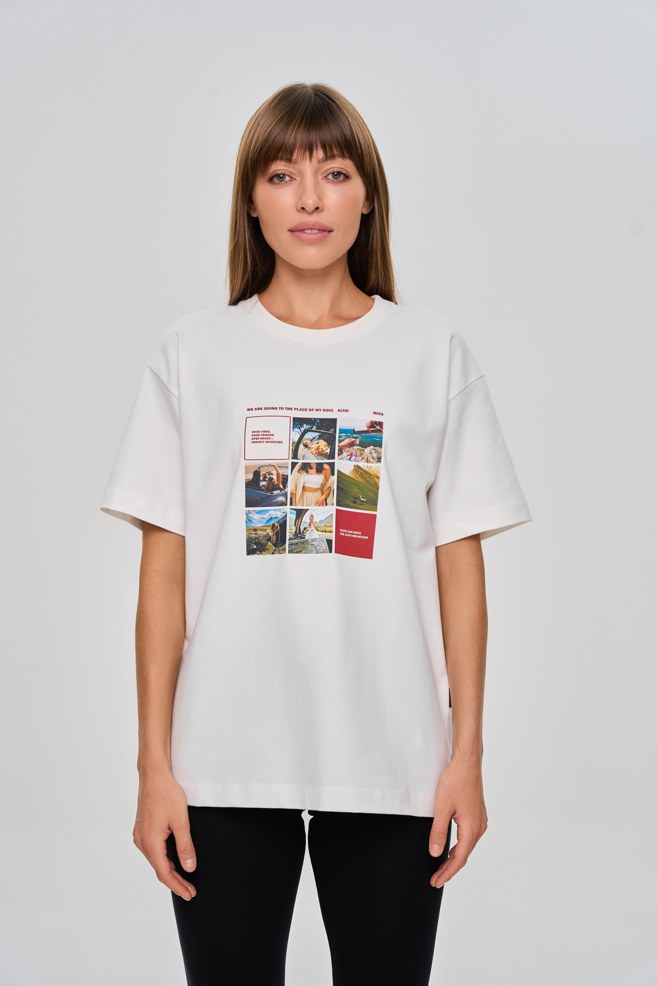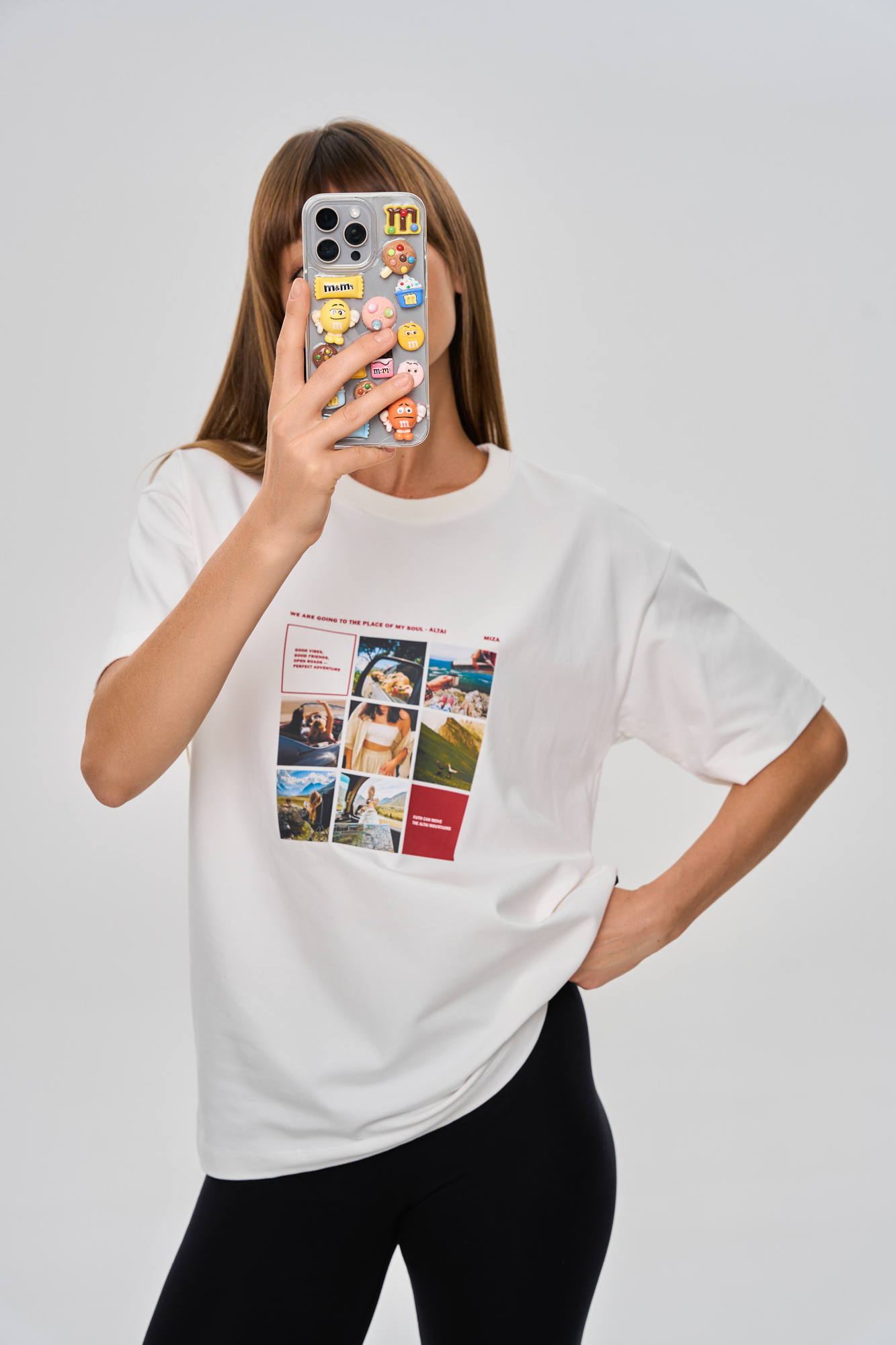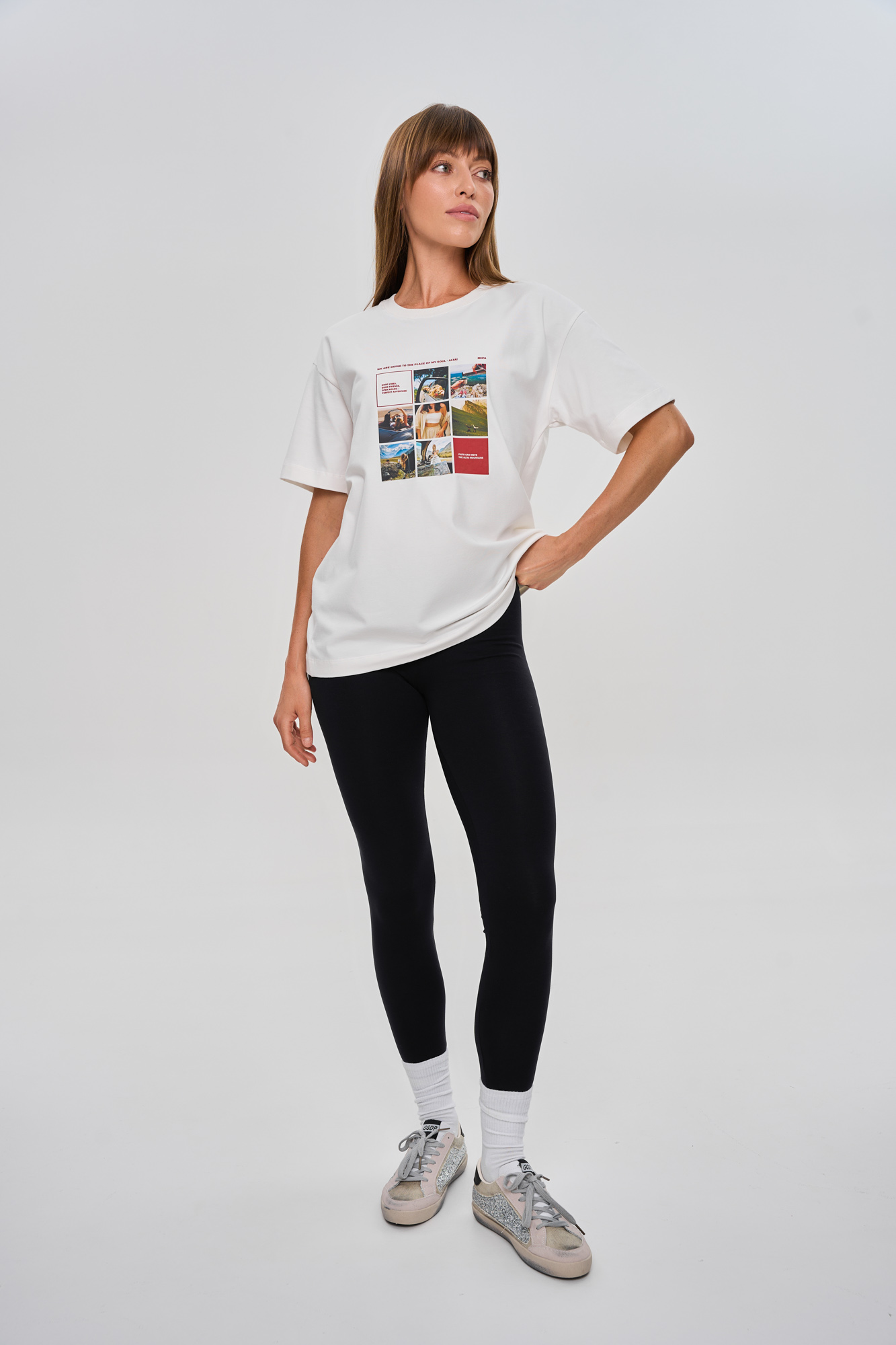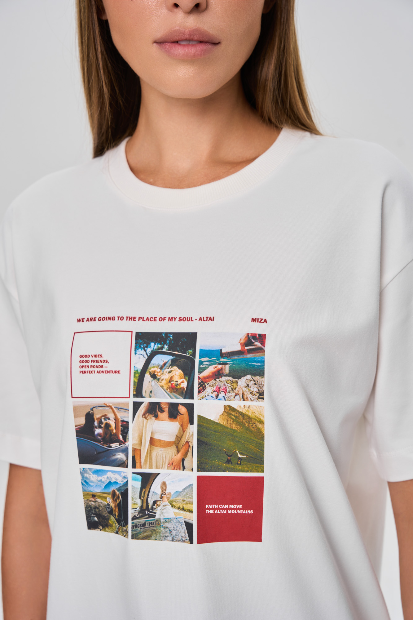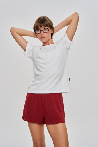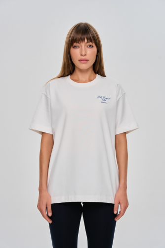 Футболка свободного кроя, выполнена из хлопкового трикотажа, содержащего эластан.