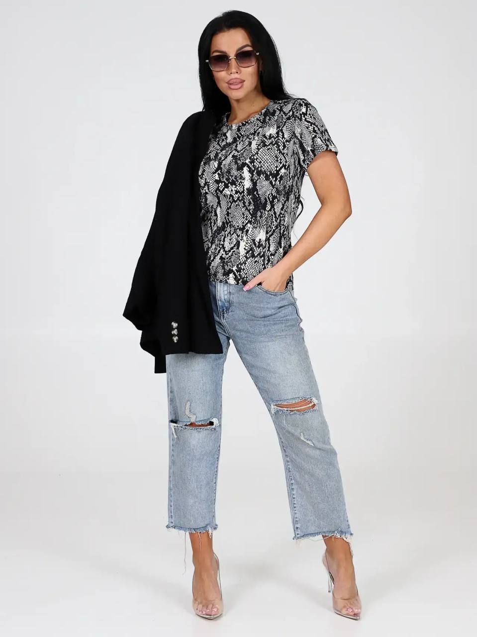 Премиальная женская футболка - это идеальный выбор для современной женщины, которая ценит комфорт, стиль и качество. Базовая модель обеспечивает легкость и свободу движений, позволяя выглядеть модно в любой ситуации. Удлиненная трикотажная футболка доступна в больших размерах, что делает ее отличным выбором для высоких и невысоких девушек, а также для беременных. Классическая модель подойдет для работы, офиса и школы. Неотъемлемая часть гардероба каждой современной женщины однотонная повседневная футболка! Благодаря свободному крою, она безупречно подходит для занятий спортом и фитнесом. Создайте свой неповторимый образ с этой легкой оверсайз футболкой и будьте в центре внимания в любой ситуации. Цвет: белый;черный;ярко-розовый;леопардовый;питон; Материал: фуллайкра; Состав: 95%хлопок , 5%лайкра.
