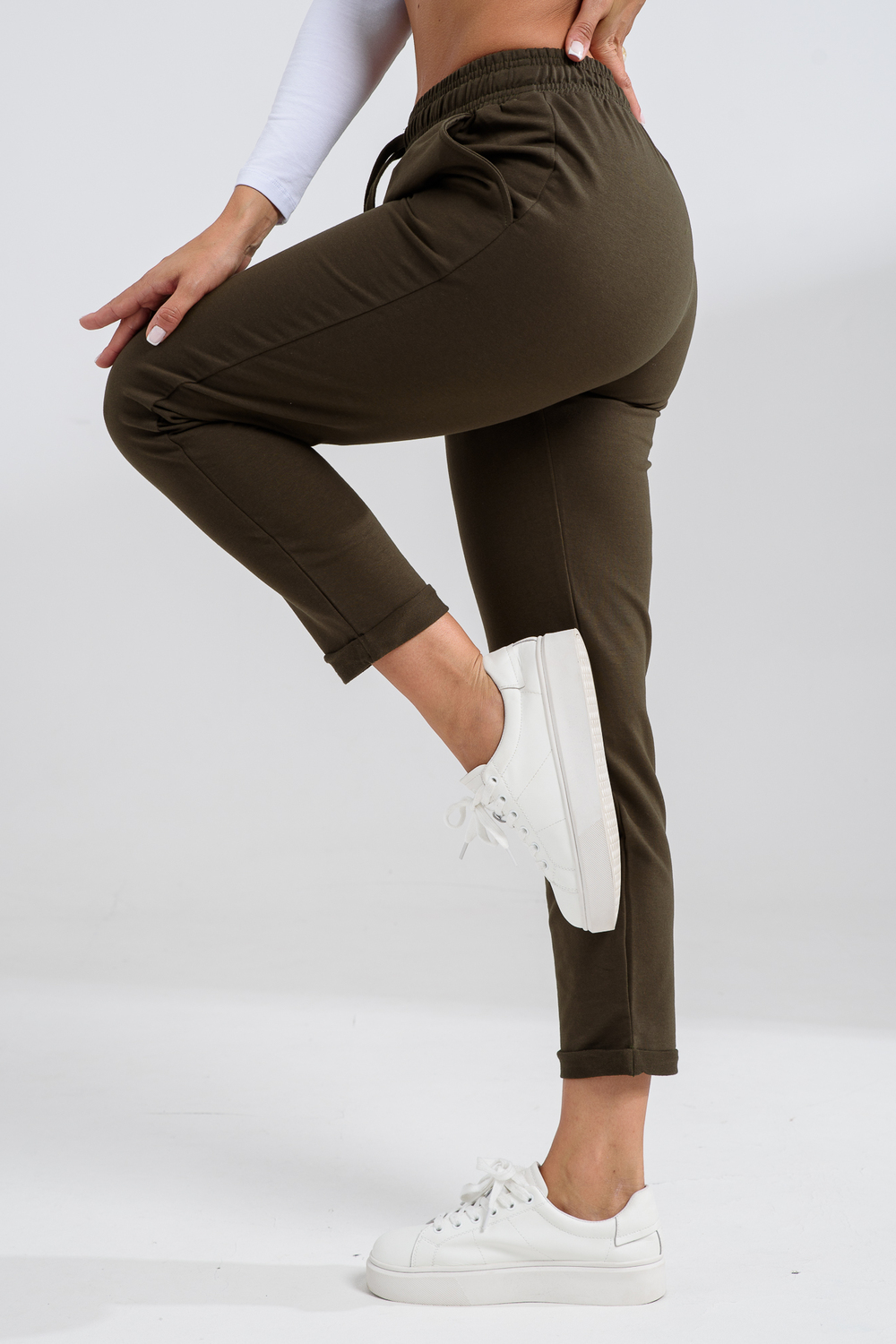 Брюки женские это универсальные прямые штаны, которые подойдут под любой образ: классический, домашний или спортивный. Брюки спортивные женские из турецкого хлопка имеют эластичный мягкий пояс с завязками и два глубоких боковых кармана. Можно отрегулировать как высокую или среднюю, так и низкую посадку. Брюки не скатываются и не линяют, держат форму и не мнутся, а колени не вытягиваются даже спустя время. Спортивные штаны женские представлены в широкой размерной линейке от 44 до 58 размера. Цвет: хаки; Материал: футер с лайкрой 2-х нитка;футер с лайкрой 2-х нитка; Состав: 92% хлопок, 8% эластан.