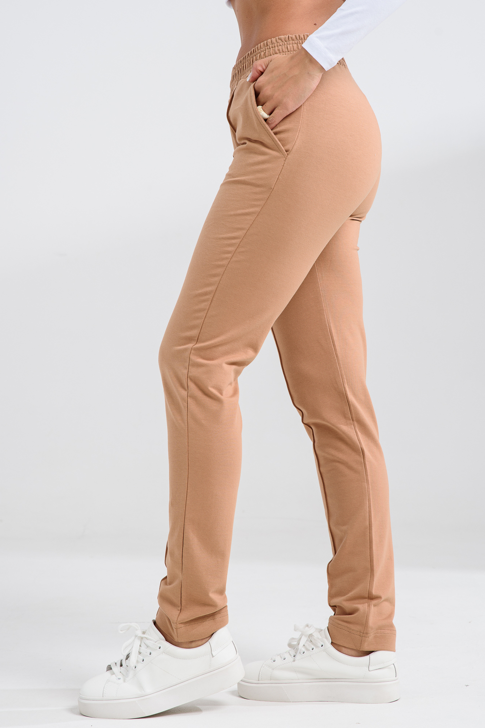 Брюки отлично для праздника, учебы, прогулок и офиса Цвет: капучино; Материал: футер с лайкрой 2-х нитка;футер с лайкрой 2-х нитка; Состав: 92% хлопок, 8% эластан.