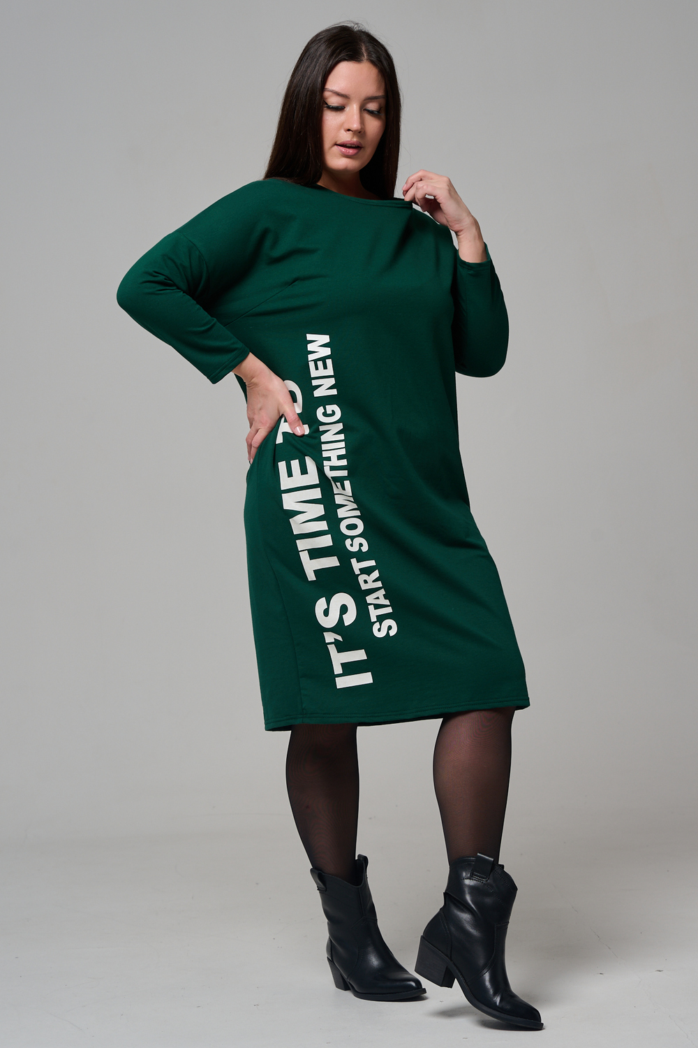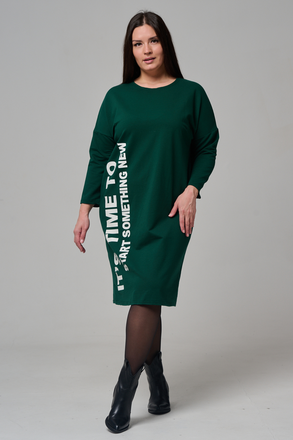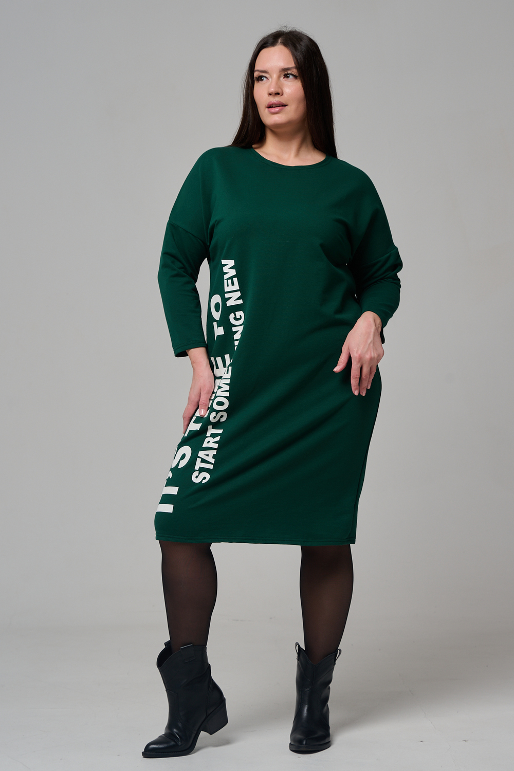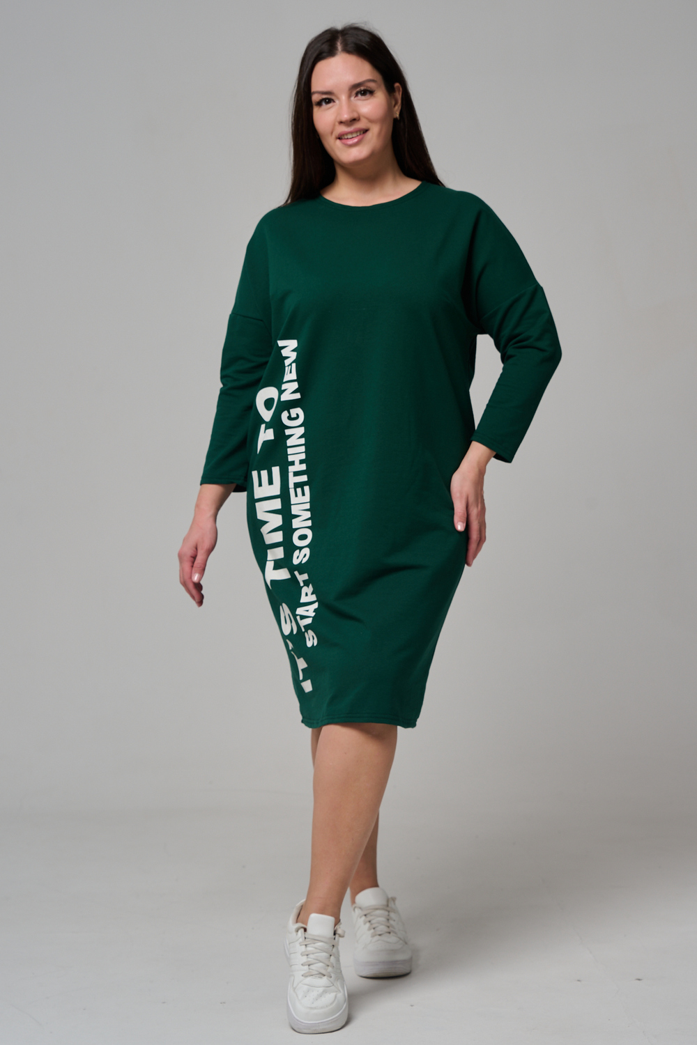 Платье из футера 2-х нитки, свободного кроя, спущенный рукав. На одной части платья стильный одноцветный принт. Цвет: изумруд; Материал: футер 2-х нитка;футер 2-х нитка; Состав: 70% х/б 30% ПЭ.