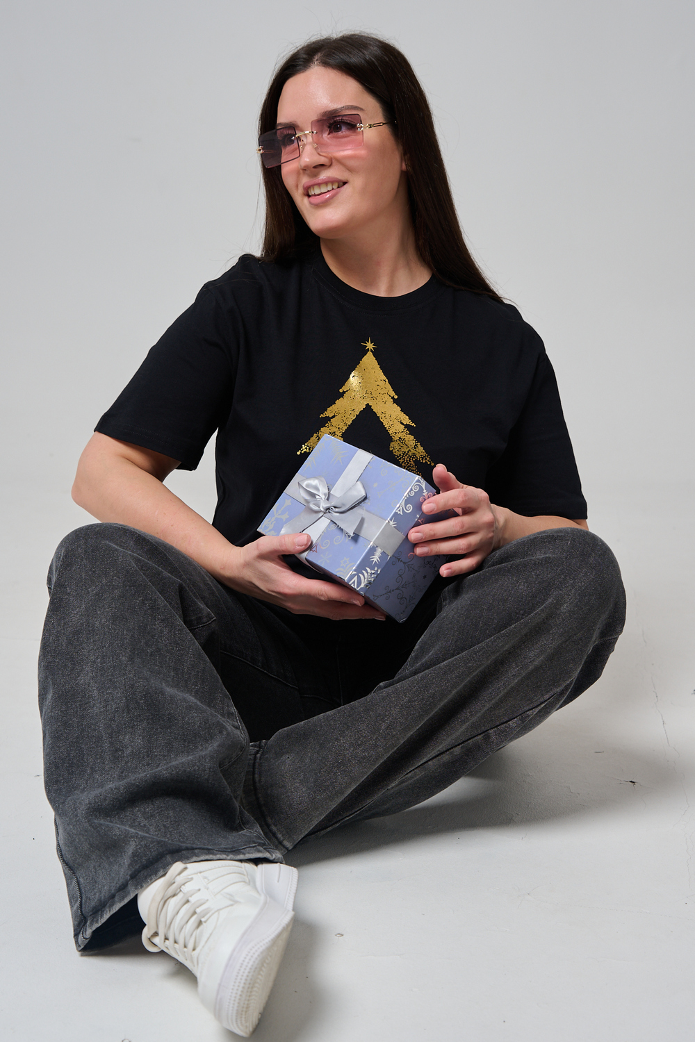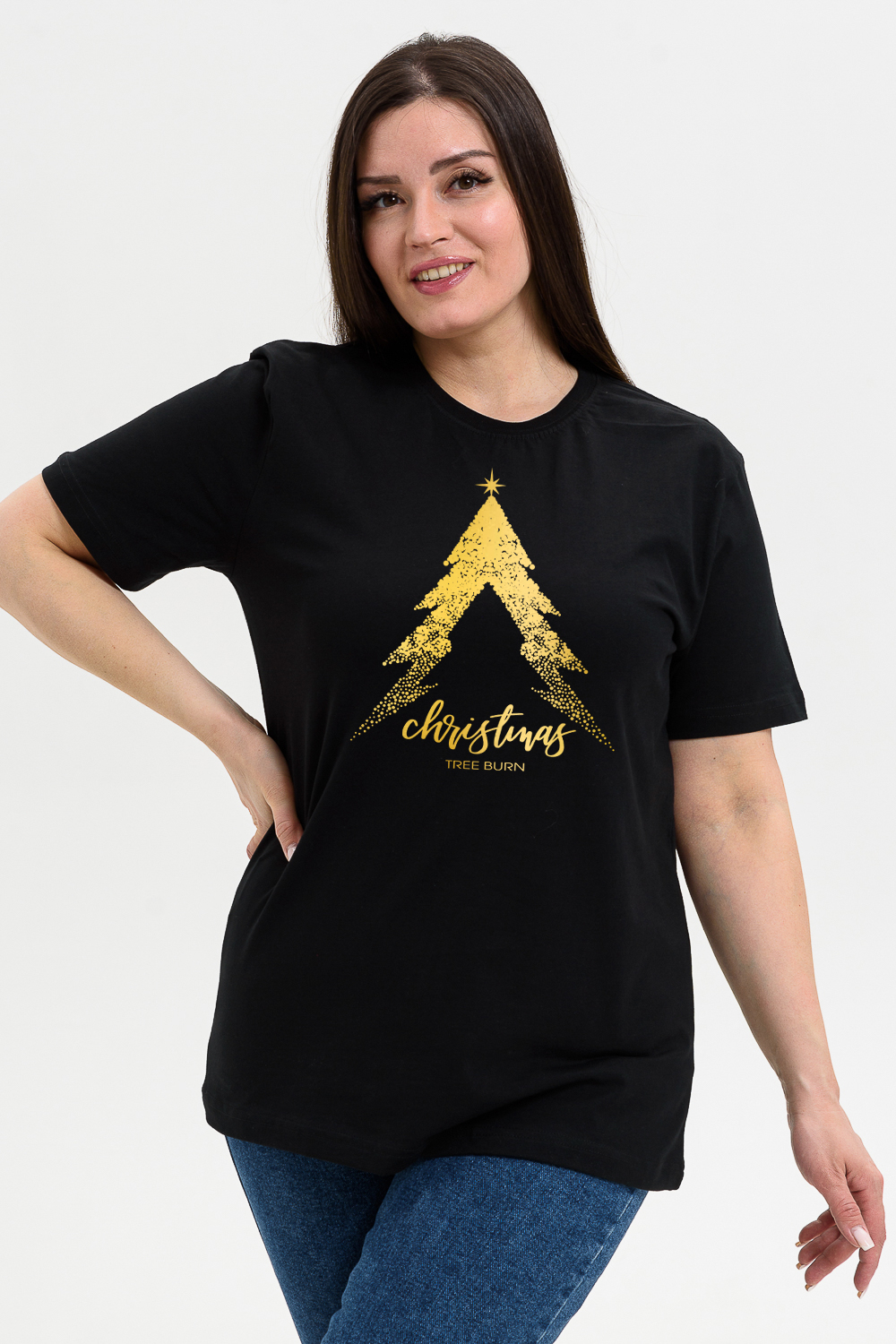 Футболка это идеальный выбор для женщин, предпочитающих комфорт и стиль. Сделанная из 100% хлопка, эта футболка обеспечивает отличную дышащую способность, делая её идеальной для домашнего использования, пляжного отдыха или просто для повседневного ношения. Уникальный принт на передней части добавляет элемент индивидуальности и стиля, делая эту футболку отличным дополнением к вашему гардеробу. Цвет: черный+елочка гори; Материал: кулирка;кулирка; Состав: 100% хб.