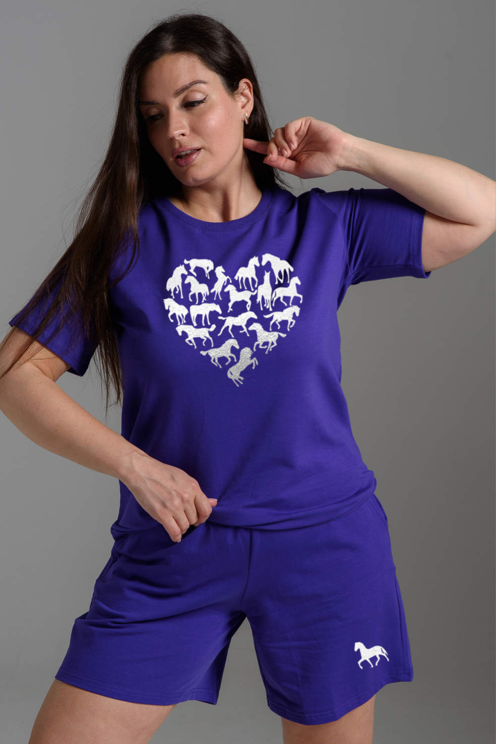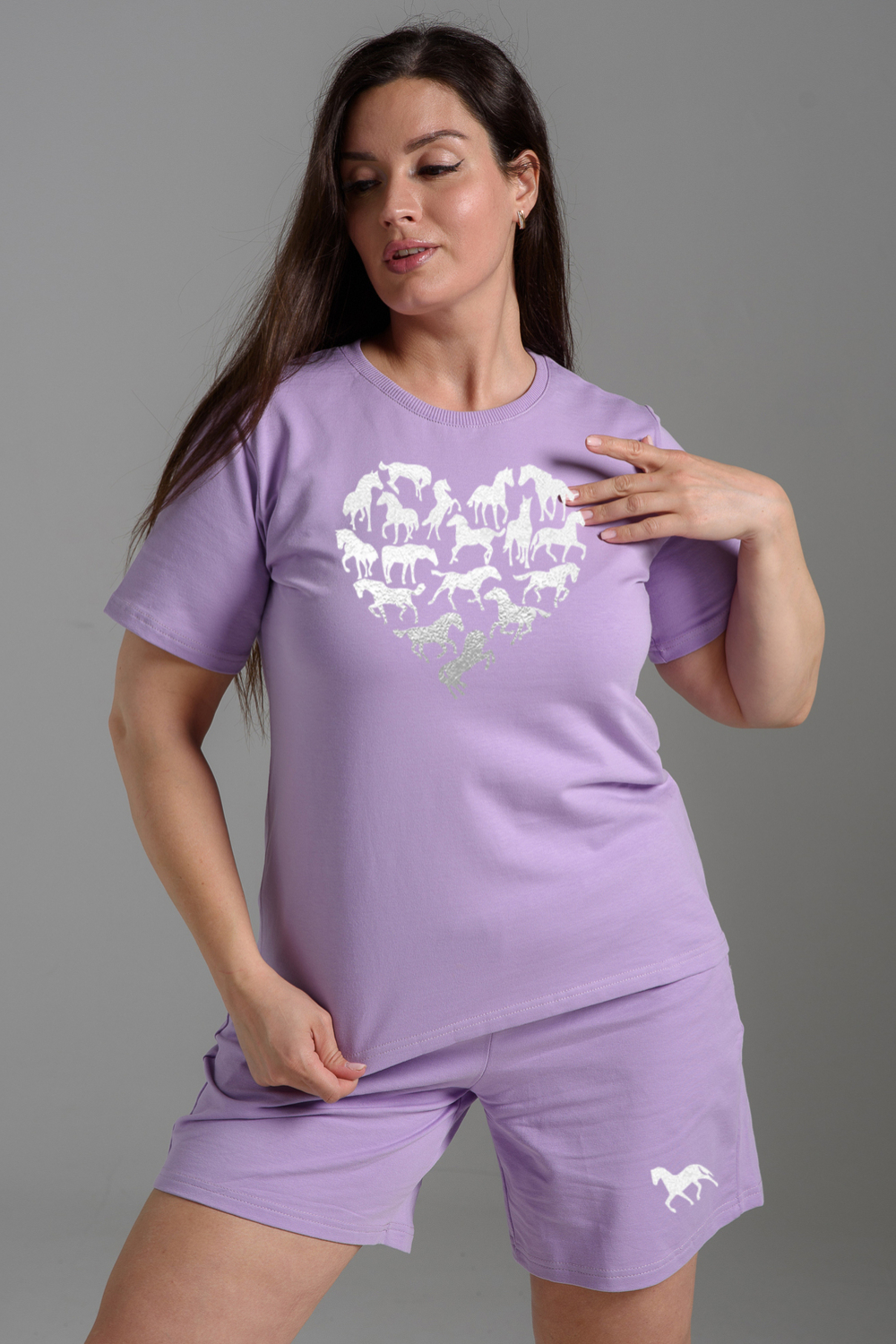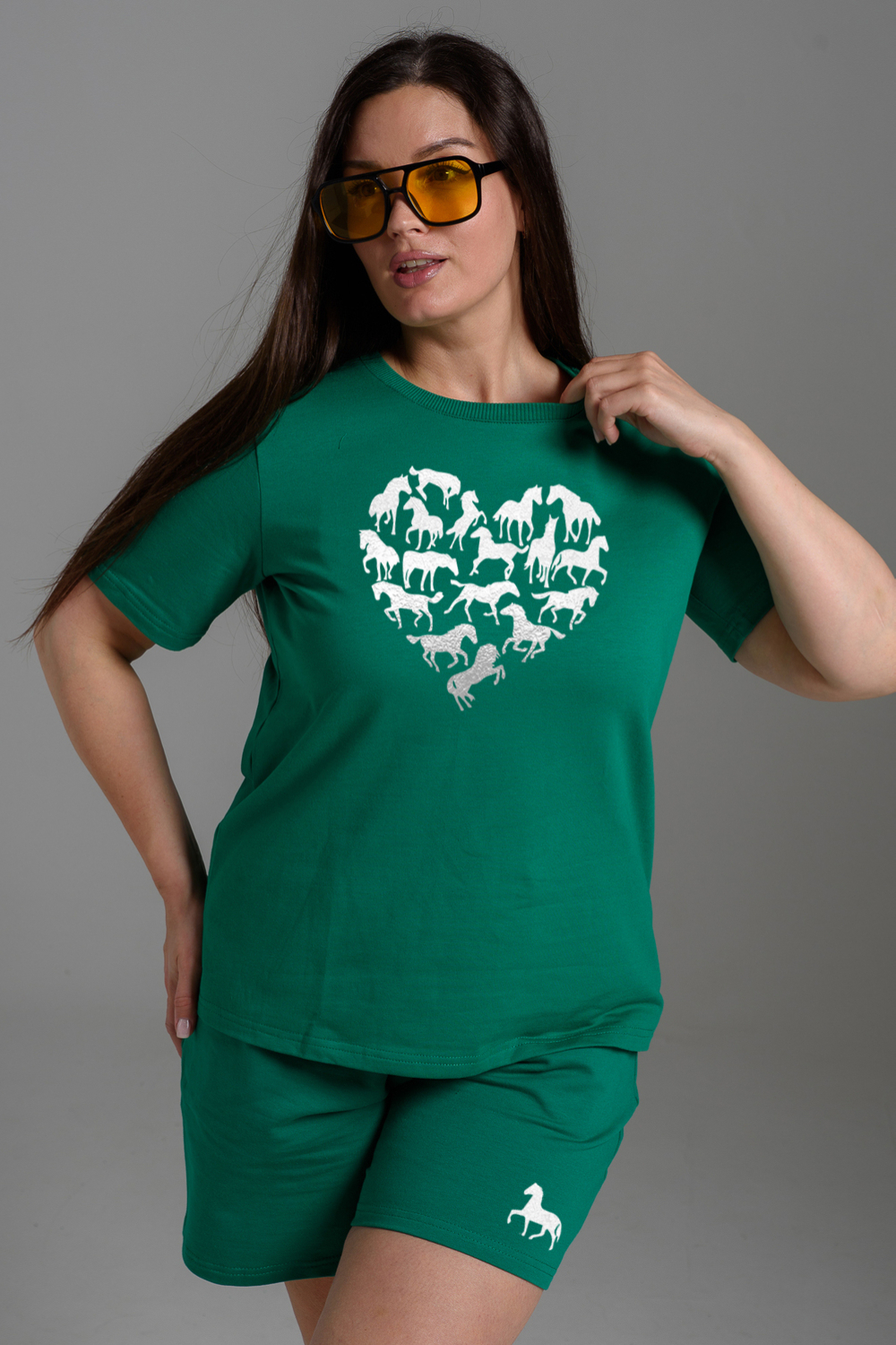 Женский летний костюм из футера 2-х нитки комфорт, лёгкость и стиль каждый день! Оцените идеальное сочетание уюта и трендов с нашим костюмом двойкой от бренда НАТАЛИ! В комплект входит свободная футболка оверсайз и шорты с боковыми карманами универсальный фасон для дома, прогулок, спорта и отдыха. Модель подойдёт для девушек любого роста и комплекции, включая подростков и plus size. Цвет: фуксия+сердце лошади;зеленый+сердце лошади;сирень+сердце лошади;фиолетовый +сердце лошади; Материал: футер 2-х нитка;футер 2-х нитка; Состав: 92% хлопок , 8% п/э.