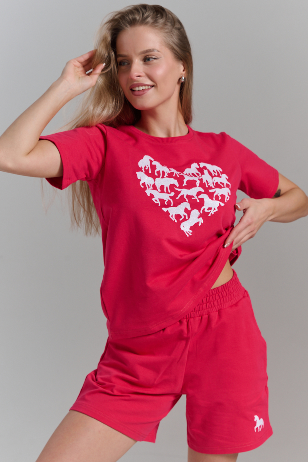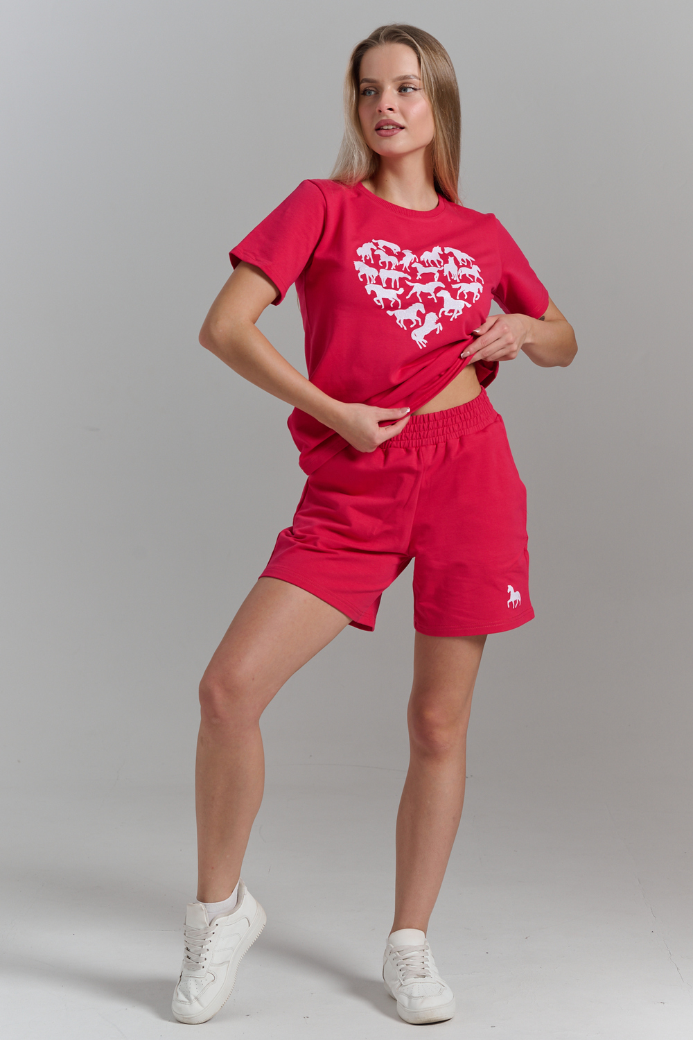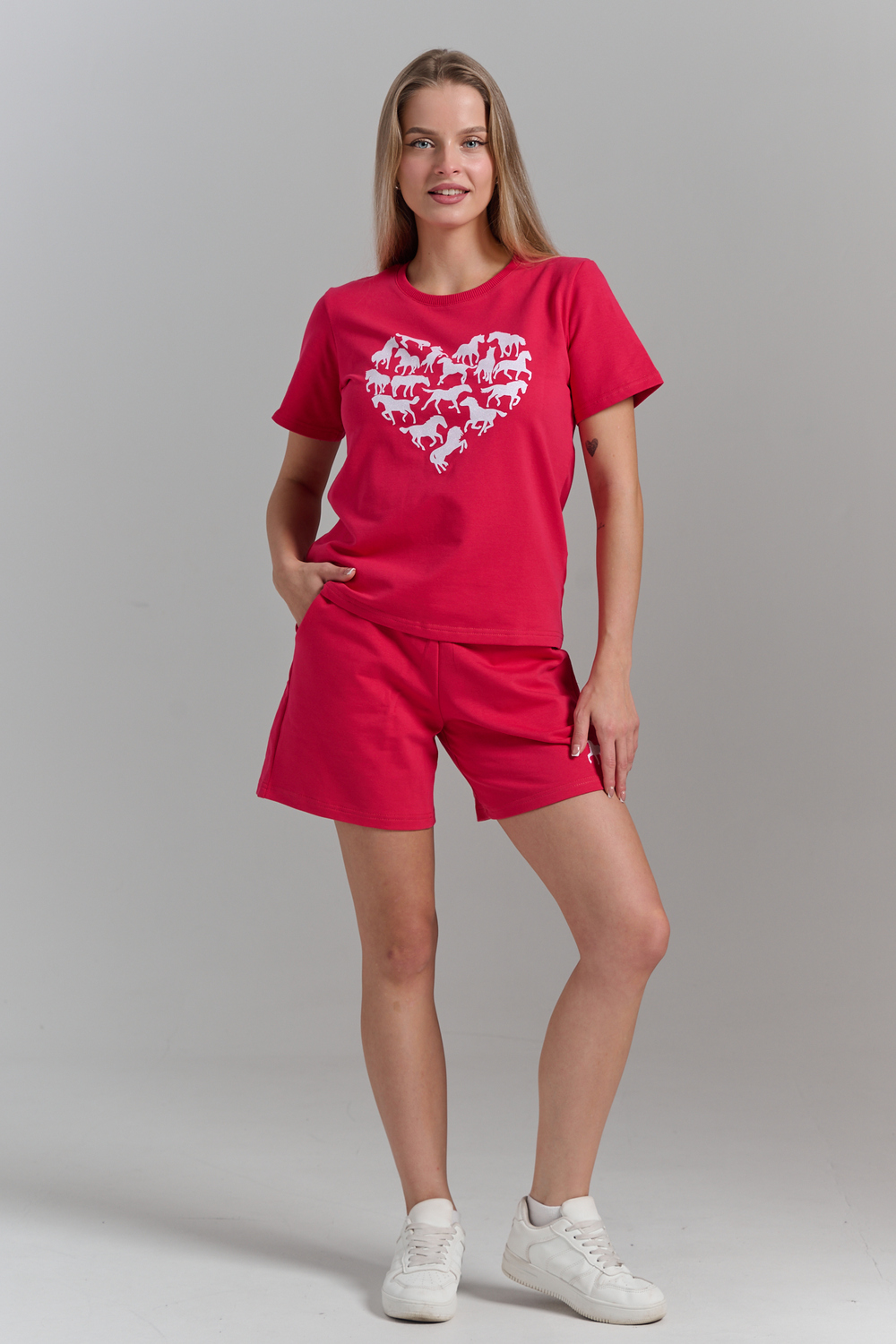Женский летний костюм из футера 2-х нитки комфорт, лёгкость и стиль каждый день! Оцените идеальное сочетание уюта и трендов с нашим костюмом двойкой от бренда НАТАЛИ! В комплект входит свободная футболка оверсайз и шорты с боковыми карманами универсальный фасон для дома, прогулок, спорта и отдыха. Модель подойдёт для девушек любого роста и комплекции, включая подростков и plus size. Цвет: зеленый+сердце лошади; Материал: футер 2-х нитка;футер 2-х нитка; Состав: 92% хлопок , 8% п/э.