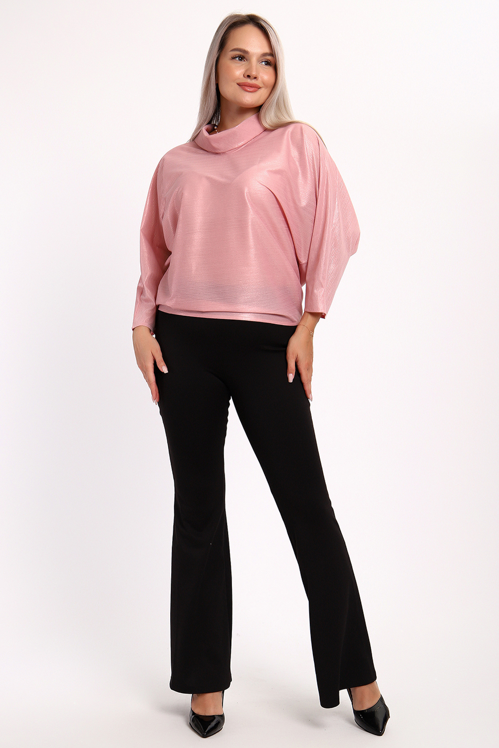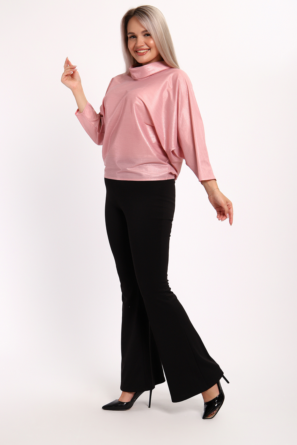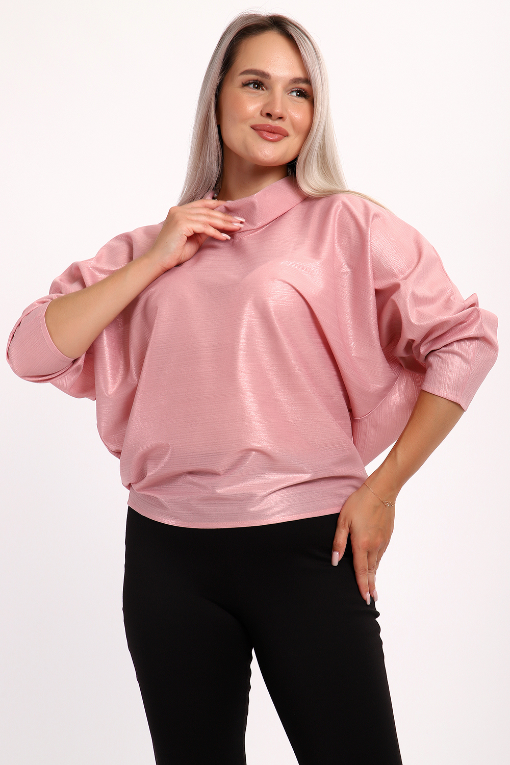Нарядная и эффектная блузка из ткани шифон- металлик. Ткань тонкая, слегка прозрачная, имеет красивый металлический блеск, переливаясь на складках изделия, не мнется и отлично драпируется. Свободный крой и рукав летучая мышь делает эту блузку универсальной, подходящей на любую фигуру. Длина рукава 3/4, воротник- хомут придает женственности образу. Блузка слегка заужена к низу, чтобы на бедрах образовался напуск. С помощью этой блузки можно создать и праздничный, и деловой, и повседневный образ, комбинировать с юбкой и брюками. Широкий размерный ряд - с 48 по 62 размеры. Цвет: розовый; Материал: шифон;шифон; Состав: 95% ПЭ, 5% спандекс.