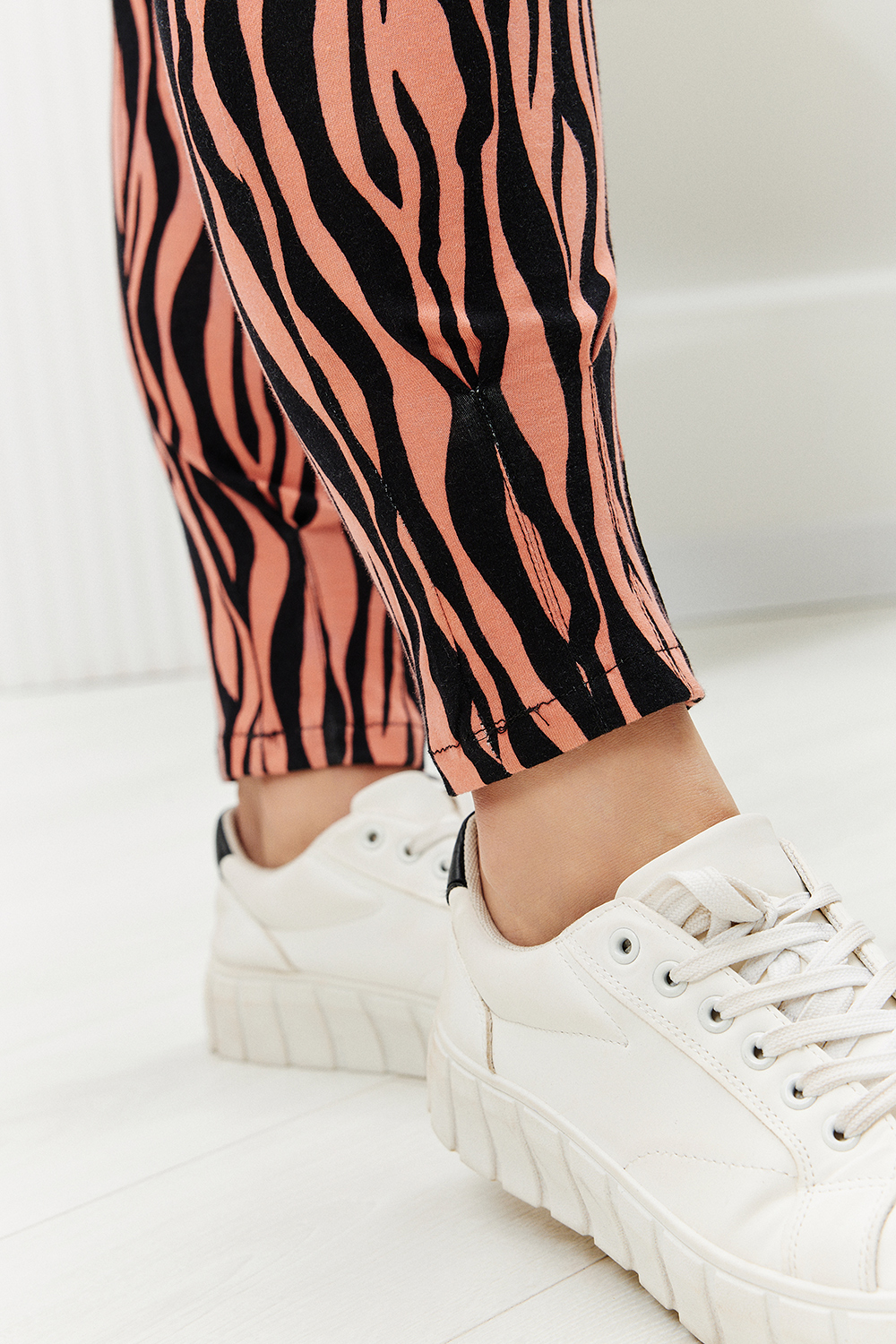 Брюки женские с завышенной талией яркой оригинальной расцветки выполнены из кулирки 100% хлопок. Брюки на широком поясе с резинкой, спереди защипы, по бокам карманы, внизу заужены благодаря защипам. Изделие имеет очень удобную посадку, брюки комфортные в носке, идеально подойдут как для дома, так и для отдыха. Цвет: черный;коричневый; Материал: кулирка;кулирка; Состав: 100% хлопок.