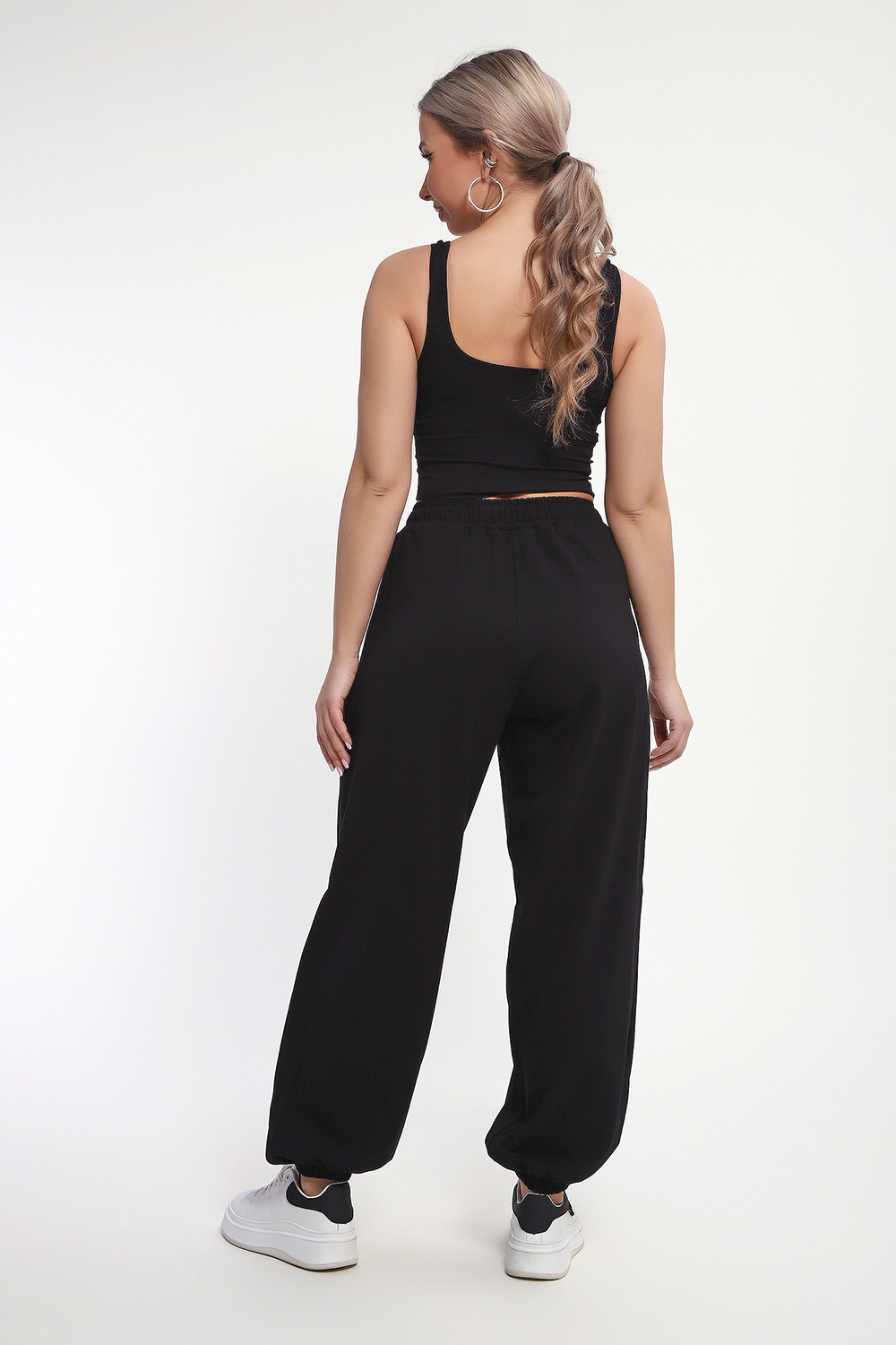 Брюки алладинки с мягкой широкой резинкой на талии и по низу изделия, свободного кроя со складочками спереди и карманами. Свободный широкий силуэт обеспечивают удобство и свободу движений, визуально стройнит фигуру. Легкая приятная ткань не требует сложного ухода и долго сохраняет форму. Модель легко сочетать с футболками, худи и базовыми топами. Стильные женские брюки алладины это универсальная модель для повседневной носки, отдыха, прогулок. Цвет: черный; Материал: кулирка с лайкрой пенье;кулирка с лайкрой пенье; Состав: 92% хлопок, 8% лайкра.