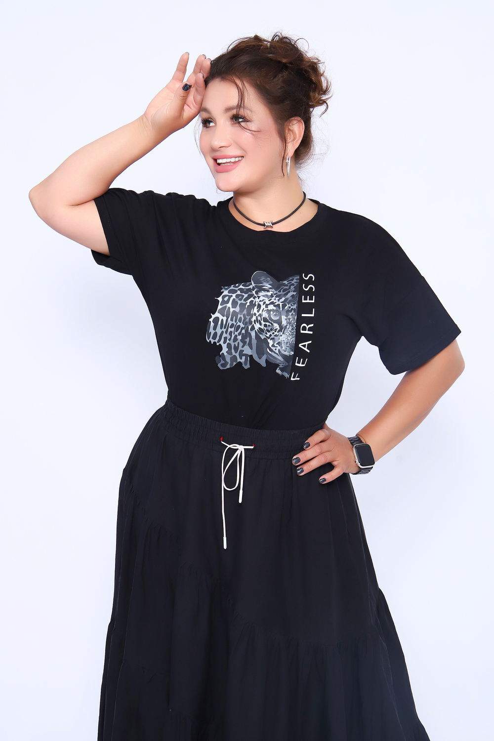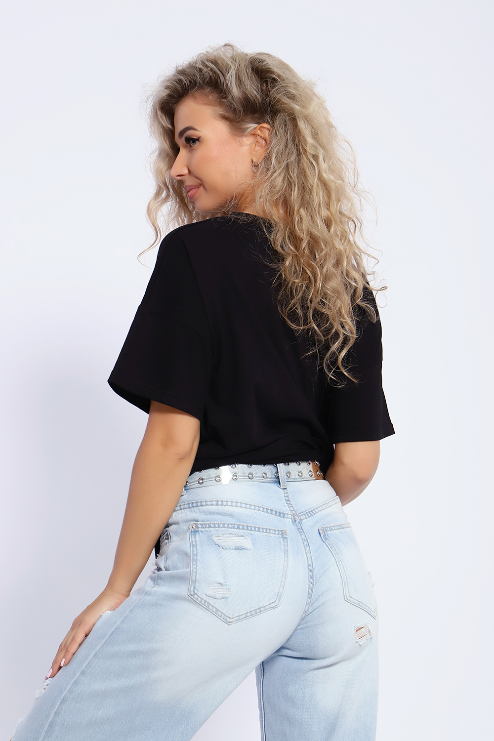 Футболка женская с рукавом, со спущенным плечом, в стиле оверсайз. Данная модель выполнена из трикотажного полотна кулирка (хлопок). Это модель станет незаменимой частью гардероба, отлично подойдет для повседневной носки, для прогулок и отдыха. Цвет: черный; Материал: кулирка;кулирка; Состав: хлопок 100%.
