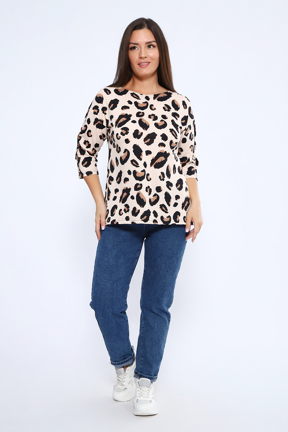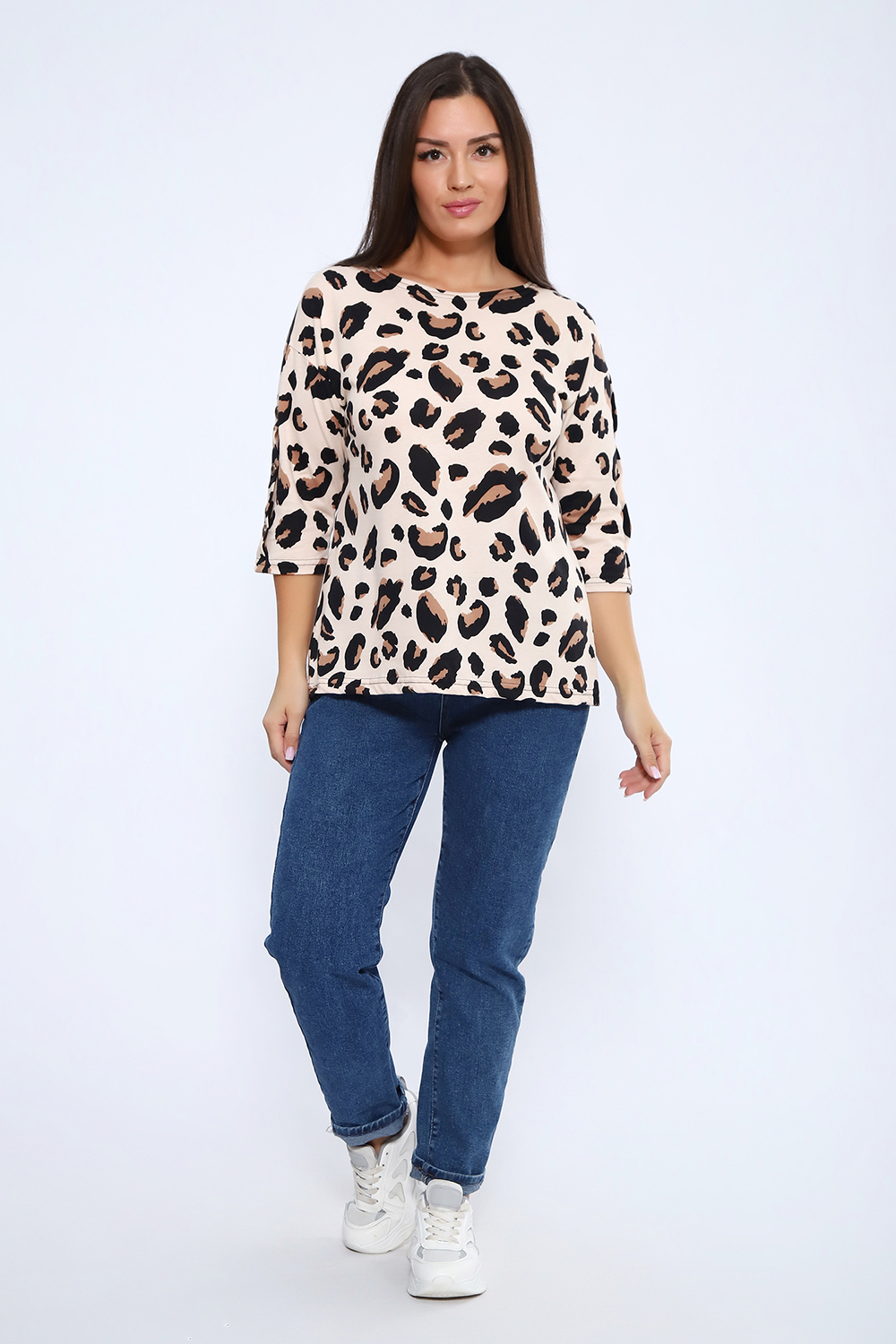 Футболка женская свободного прилегания с рукавами 3/4, украшенная пуговицами на рукавах. Цвет: синий; Материал: кулирка;кулирка; Состав: Хлопок 100 %.