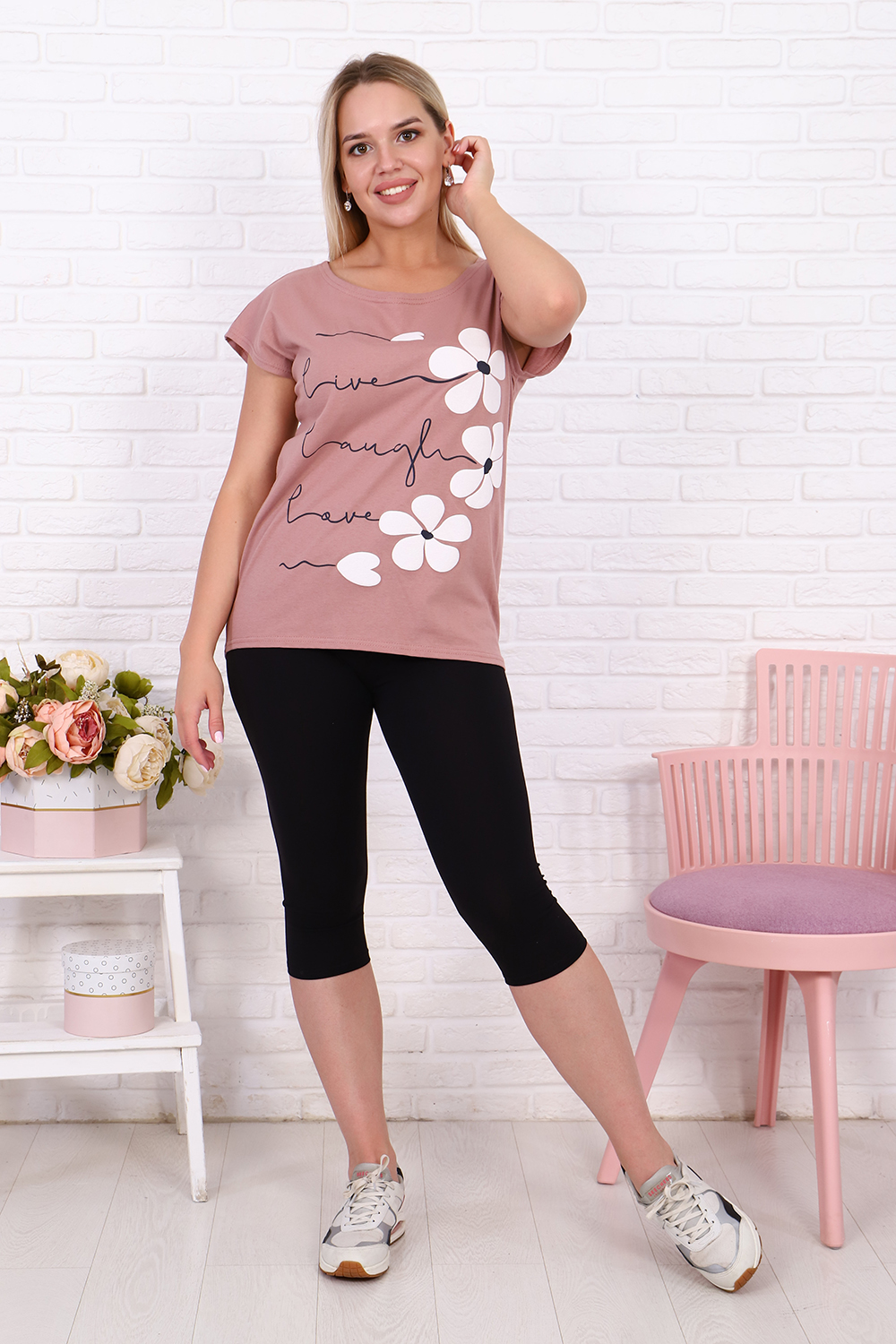 Костюм женский с принтом состоит из футболки и бридж. Модель представлена в трех трендовых оттенках этого сезона. Футболка выполнена из трикотажного полотна высокого качества, полуприлегающего силуэта, горловина в виде лодочки. Бриджи удобные, практичные, облегающего силуэта. Резинка вшита в пояс, длина чуть ниже колена. Ткань бридж мягкая на ощупь, не садится после стирки и не теряет цвет. Костюм непременно станет идеальным предметом вашего гардероба для фитнеса, туризма и любого активного отдыха. Цвет: серый меланж; Материал: кулирка;кулирка с лайкрой пенье;кулирка;кулирка с лайкрой пенье; Состав: светло-зеленый: верх: 100% хлопок, низ: хлопок 94% лайкра 6%
