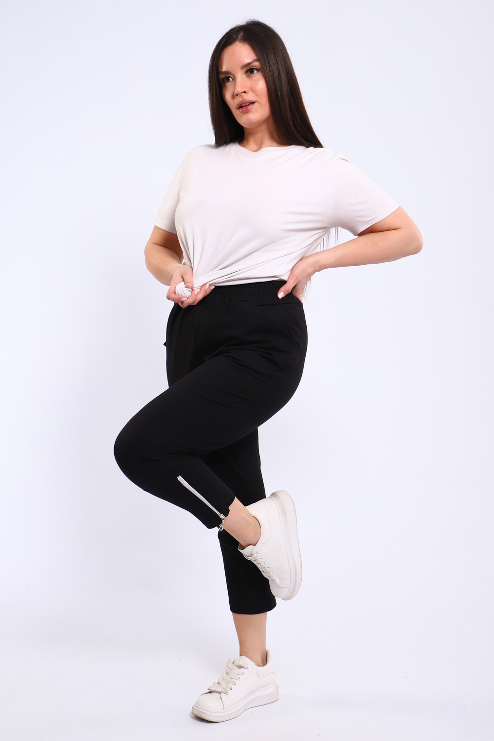 Брюки женские 7/8 из футера двухнитки с молнией на манжете брюк и петлей на кармашке для карабина ключей или декоративного брелока.