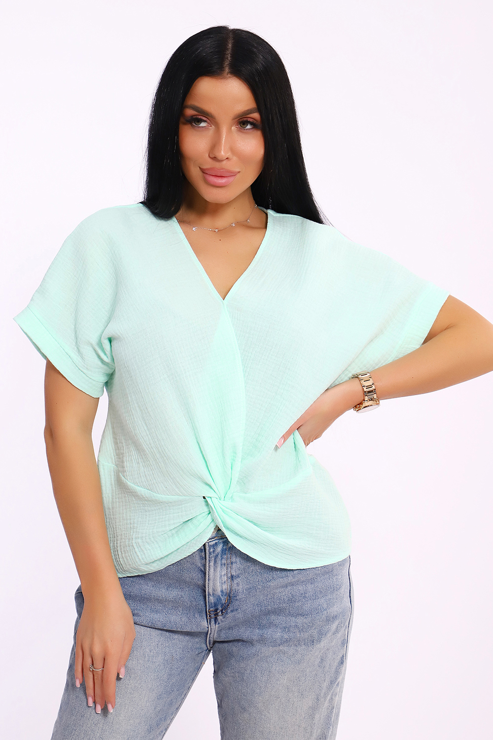 Легкая и невесомая очаровательная блузка из муслина. 100% хлопок в составе муслина позволит комфортно себя чувствовать в летнюю жару. Оригинальный крой блузки скроет недостатки и подчеркнет достоинства фигуры. Спущенный рукав обеспечит свободу движения, полочки, запахиваясь друг на друга, образуют интересные складки спереди. Длина изделия до линии бедра. Блузка будет хорошо сочетаться с джинсами, летними брюками и шортами, с юбкой.