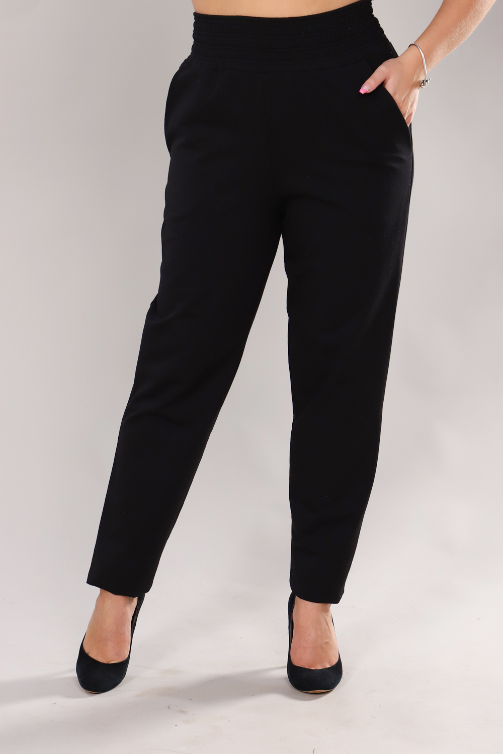 Классические женские брюки из футера выполнены на широком поясе-резинке, который как скрывает все недостатки, так и подчёркивает достоинства фигуры. Для удобства изделие дополнено боковыми карманами. Данная модель будет радовать Вас своим комфортом и практичностью в повседневном гардеробе.