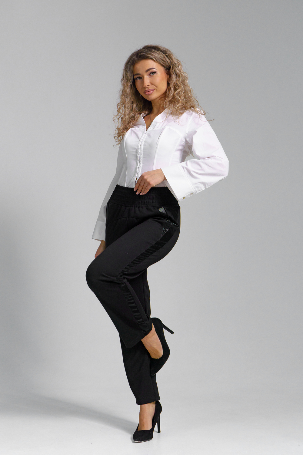 Женские стильные прямые брюки выполнены из двух видов материала: качественная эко-кожа и воздухопроницаемый плотный стрейч - трикотаж нейлон - рома. Два этих дополняющих друг друга материала создают комфорт, удобство и поддерживают температуру тела постоянной вне зависимости от условий внешней среды. Качественный материал не теряет свойств при интенсивной эксплуатации. Хорошо сохраняет первоначальную форму и презентабельный внешний вид. Неприхотливый, элементарно стирается, быстро сохнет, не нуждается в глажке. Модель такого плана поможет Вам создать сногсшибательный образ. Изделие выполнено на широком поясе - резинке с завышенной линией талии, что делает Вашу фигуру стройной и подтянутой. По бокам изделия имеется вставка и карман-обманка из экокожи, актуальной в этом и следующем сезоне. Брюки такого плана станут прекрасной основой любого образа, как на каждый день, так и на праздник. А размерная сетка не оставит без внимания прекрасных представительниц корпулентных форм, поэтому размерный ряд включает в себя большие размеры. Классические брюки с резинкой на поясе прекрасно подойдут как для повседневного образа на работу, в офис, так и на любое мероприятие. Брюки больших размеров вытягивают силуэт, делая ноги зрительно стройнее и длиннее, при этом надежно скрывая любые несовершенства. Легкие и комфортные, представлены стандартных и больших размеров плюс сайз plus size. Брюки с зауженными к низу штанинами позволяют создавать модные образы, а завышенная линия талии обеспечивает комфортную посадку. Универсальные, идеально садятся, не сползают и правильно ведут себя при движении. Из-за особенностей кроя визуально вытягивают силуэт и делают его тонким и изящным. Отличный вариант создать стильный образ для прогулок. Очень комфортные в повседневной носке в любой сезон. Если вы ищете брюки на каждый день, то эта удобная и практичная модель для Вас!