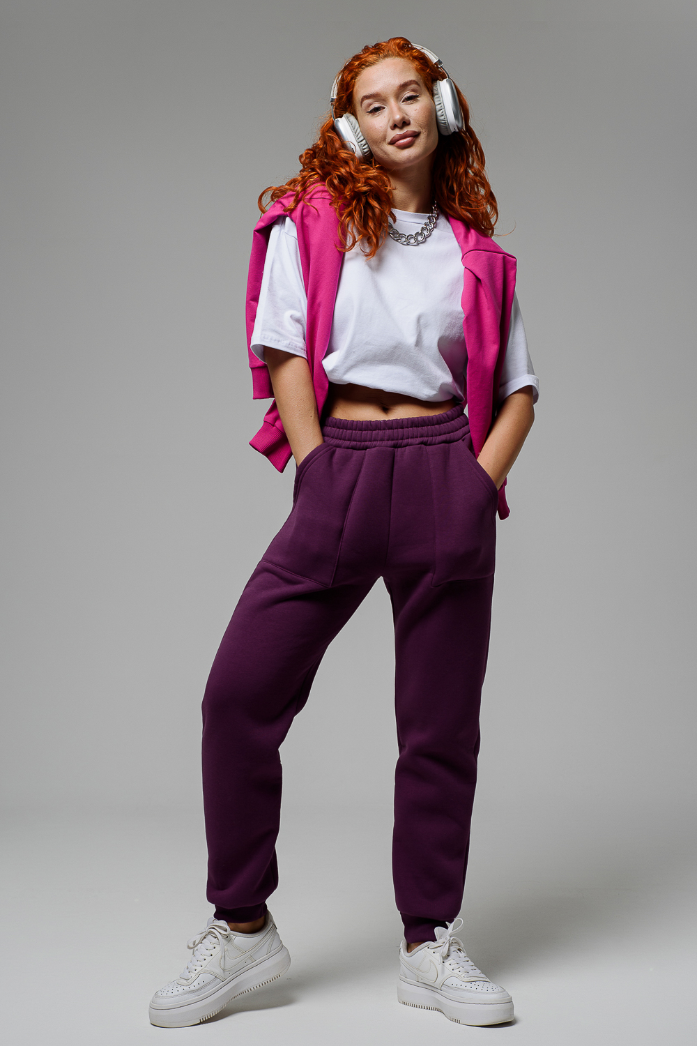 Брюки утепленные, на поясе, свободные, с боковыми накладными карманами, на эластичном манжете по низу.
