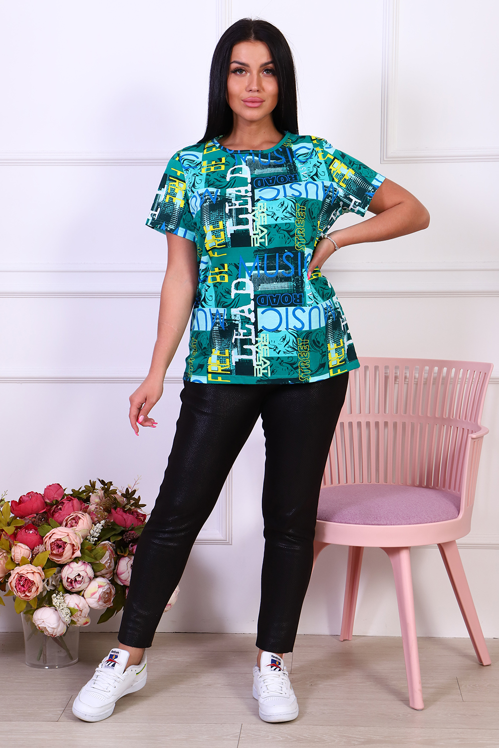 Модная и стильная футболка выполнена из 100% хлопчатобумажной ткани. А необычная расцветка, собранная в потрясающий коллаж в стиле поп-арт, несёт в себе восхитительный коктейль красок и рисунков.