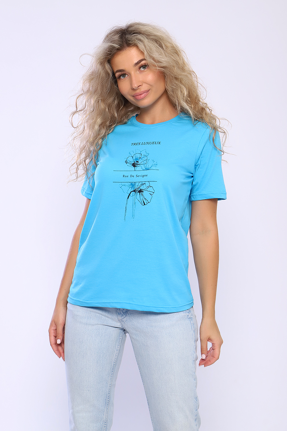Женская футболка с круглым вырезом горловины и короткими рукавами. Такая модель подойдет абсолютно всем и станет необходимой вещью в вашем гардеробе.