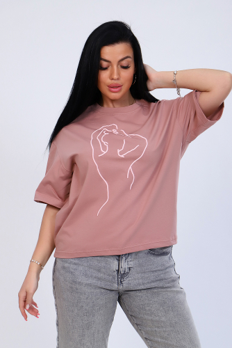 Футболка с нежным принтом из мягкого трикотажа с лайкрой высокого качества пенье. Модель свободного силуэта, круглая горловина обработана обтачкой, короткий широкий рукав, низ спинки слегка удлинён и собран на широкой резинке. Удобная и во многом универсальная вещь не только идеально дополняет комплекты одежды повседневного стиля, но и отлично комбинируется со строгими, классическими нарядами. Модель отлично смотрится на любом типе фигуры. Умеренный оверсайз - очень модно и практично, сочетается с джинсами, юбкой, в офис под кардиган или пиджак. Длина рукава в таблице измерений указана от плечевого шва.