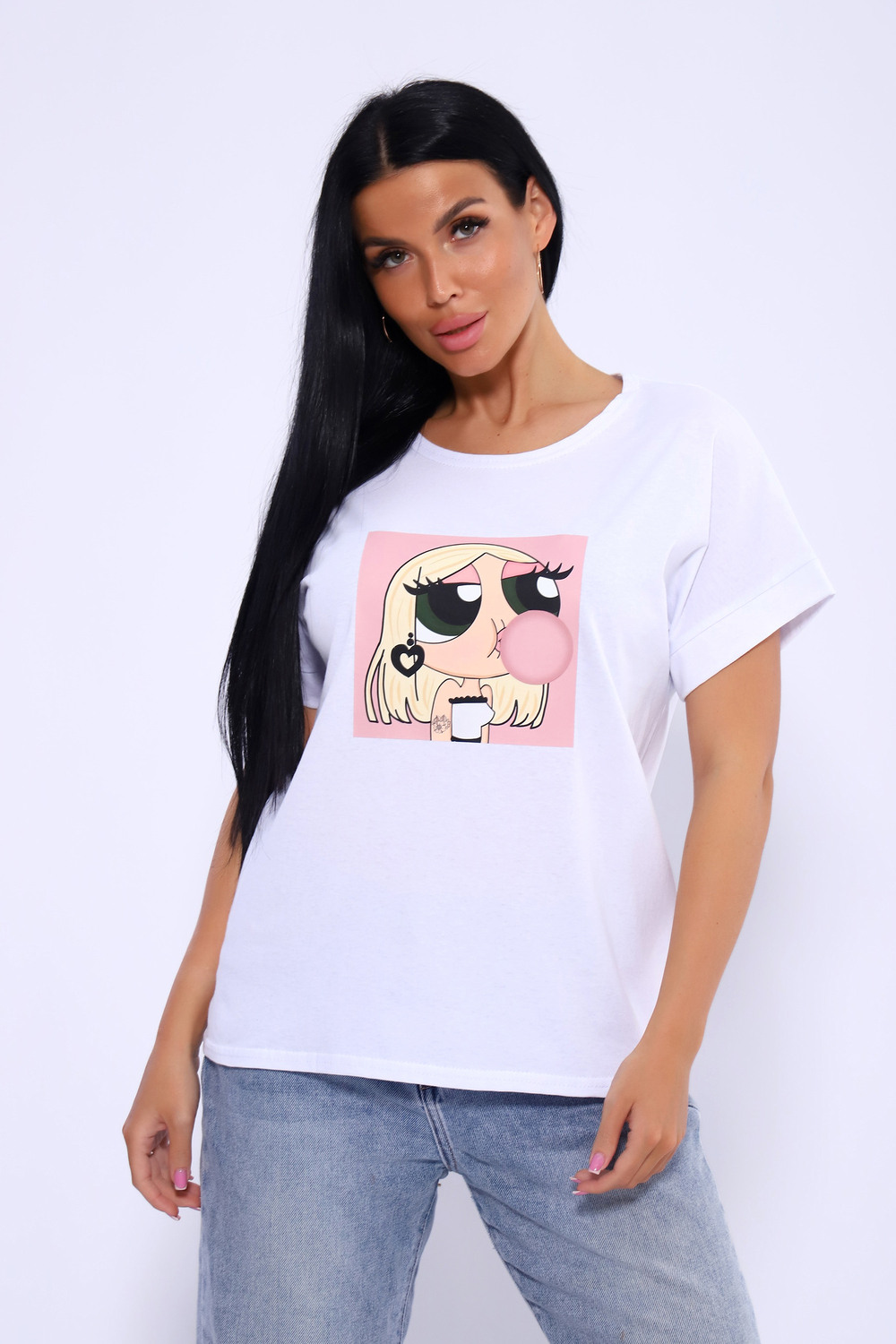 Футболка женская с ярким молодёжным принтом из мягкого, гипоаллергенного хлопкового трикотажа. Модель слегка приталенного силуэта, округлая горловина, спущенная пройма на манжете. Футболка - это универсальный элемент гардероба, который можно носить как на работу, так и на прогулку, в спортзал и просто дома. Комфортная, приятная к телу футболка подойдёт девушке любой фигуры и возраста.