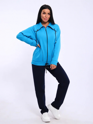 Спортивный женский костюм из эластичного футера. Брюки классического кроя без карманов на притачном поясе. Декоративный элемент в виде фиксаторов по дизайну не подбирается, может отличаться от представленного на фото.