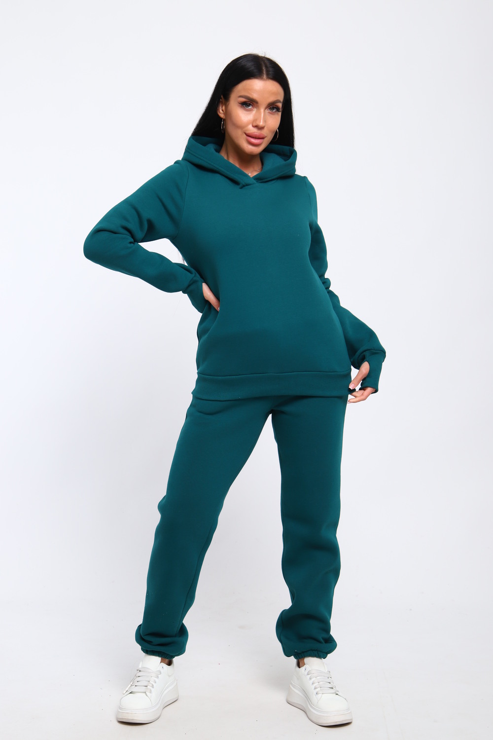 Костюм с начёсом прекрасный вариант повседневной одежды для осени и зимы. Толстовка прямого кроя, имеет классическую пройму с втачным рукавом и удлиненными манжетами с отверстием для большого пальца. Капюшон однослойный, он прекрасно защитит голову в прохладную погоду. Брюки на резинке, с боковыми наклонными карманами, по низу штанины вшита внутрь резинка.