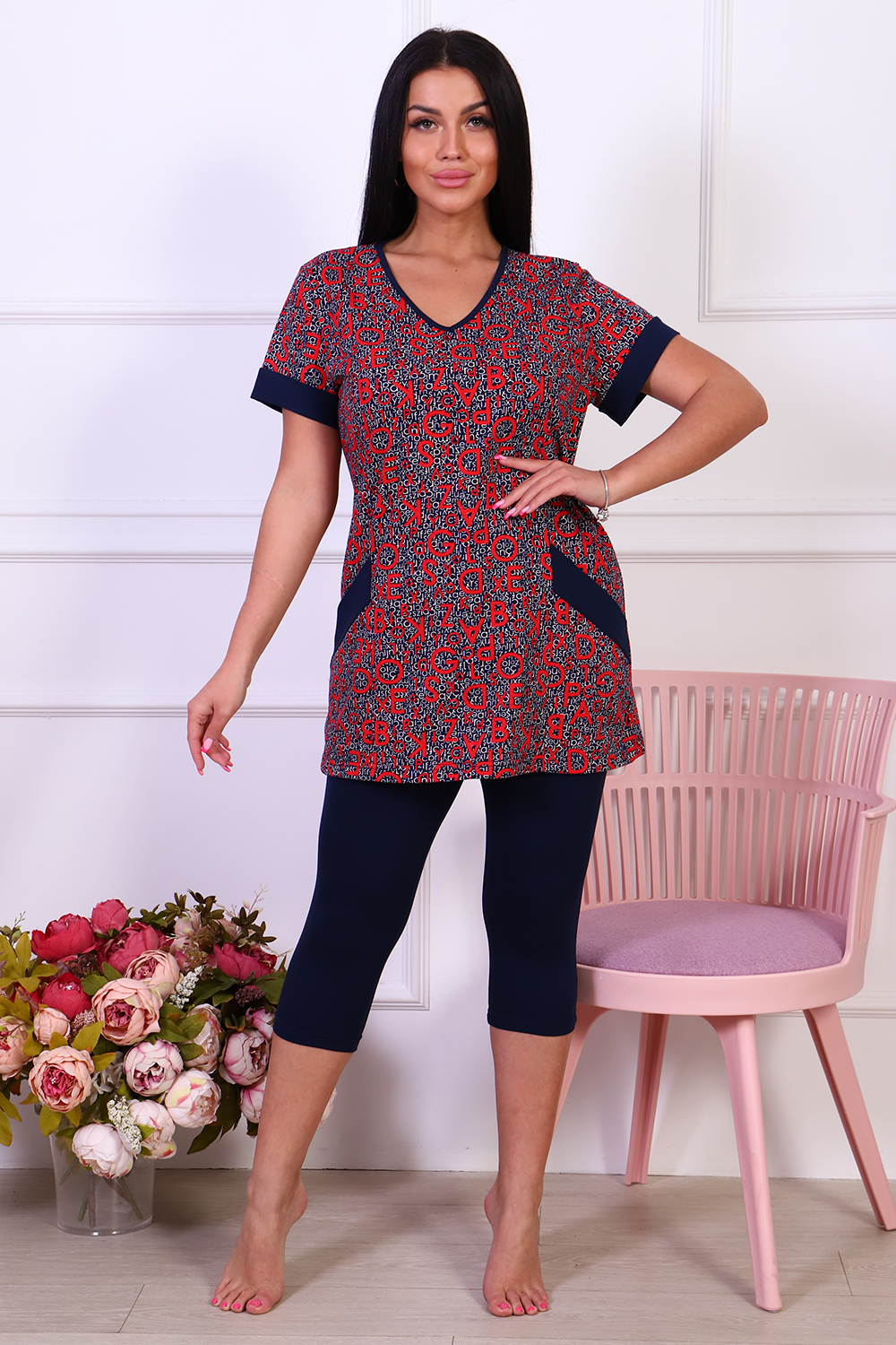 Женский костюм полуприлегающего силуэта состоит из туники и бриджей. 100% дышащий хлопок туники и эластичная вискоза бриджей несут в себе удобство при носке, гигроскопичность и износостойкость. V-образной вырез горловины придаёт изделию женственный вид. Для удобства туника имеет вместительные накладные карманы и втачные рукава с манжетами. Рельефы на полочке изделия создают идеальную посадку и безупречный внешний вид. Бриджи на резинке с высокой посадкой. В костюме такого плана Вы будете чувствовать себя комфортно как дома, так и на любимой даче.