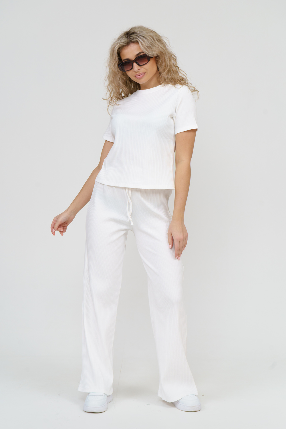 Модный костюм ТРОЙКА выполнен из высококачественного материала - лапша, который в свою очередь обладает большим количеством положительных качеств: эластичность, гигроскопичность, износостойкость, комфорт, не линяет и не выгорает. А фактура ткани визуально вытягивает силуэт и делает фигуру стройнее. Комплект состоит из удлинённого кроп-топа, брюк и шорт. Лёгкие прямые брюки с высокой посадкой в стиле палаццо из красивого материала акцентируют достоинства, а пояс-резинка, выполненный на специализированной поясной машине, не сдавливает талию, поэтому подойдёт также для беременных девушек. Шорты выполнены в свободном стиле на резинке, что идеально подойдёт для дома, отдыха и спорта. Удлинённый кроп-топ в свою очередь - это идеальный вариант на каждый день, который вы можете носить сочетая с другими вещами, создавая свой идеальный образ. А различные вариации верха с брюками - это отличный вариант для создания праздничного образа. Костюм ТРОЙКА сделает образ женщин, девушек, студентов и подростков ярким и любимым как дома, так и на улице, работе, учёбе.