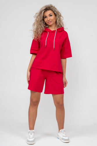 Женский костюм 2-ка выполнен из футера высокого качества с хлопком и небольшим добавлением полиэстера и лайкры, что позволяет изделию не скатываться и оставлять идеальный внешний вид на долгое время. Костюм состоит из толстовки и шорт. Толстовка с капюшоном и шнурком. Линия плеча спущена, рукав укороченный, по бокам имеются небольшие разрезы. Свободный крой прекрасно будет смотреться на дамах с любыми формами. Костюм такого плана представлен в широкой размерной сетке, что позволяет выбрать его как девушке, так и женщине. Однотонный костюм модных расцветок будет удачным выбором для поездок в отпуск, на пикник, для активного отдыха и прогулок по городу. Будет гармонично сочетаться как с кроссовками, так и с туфлями, балетками или босоножками. Используя эту модель в качестве домашнего костюма, Вы поймёте, что это именно тот самый идеальный вариант, в котором вы будете себя чувствовать удобно, комфортно и современно. Костюм с шортами - это настоящая находка для тех, кто ценит свою индивидуальность!