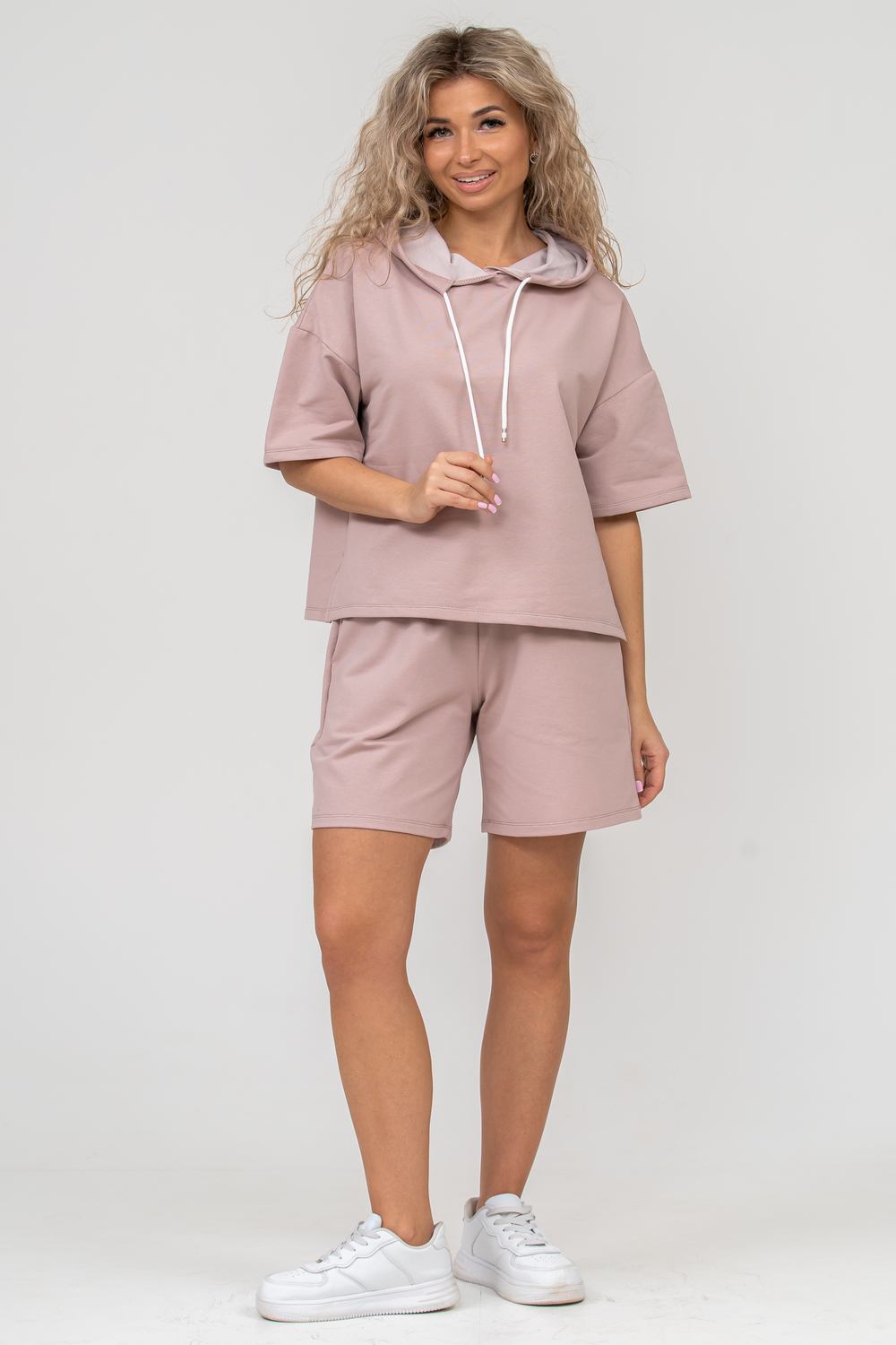 Женский костюм 2-ка выполнен из футера высокого качества с хлопком и небольшим добавлением полиэстера и лайкры, что позволяет изделию не скатываться и оставлять идеальный внешний вид на долгое время. Костюм состоит из толстовки и шорт. Толстовка с капюшоном и шнурком. Линия плеча спущена, рукав укороченный, по бокам имеются небольшие разрезы. Свободный крой прекрасно будет смотреться на дамах с любыми формами. Костюм такого плана представлен в широкой размерной сетке, что позволяет выбрать его как девушке, так и женщине. Однотонный костюм модных расцветок будет удачным выбором для поездок в отпуск, на пикник, для активного отдыха и прогулок по городу. Будет гармонично сочетаться как с кроссовками, так и с туфлями, балетками или босоножками. Используя эту модель в качестве домашнего костюма, Вы поймёте, что это именно тот самый идеальный вариант, в котором вы будете себя чувствовать удобно, комфортно и современно. Костюм с шортами - это настоящая находка для тех, кто ценит свою индивидуальность!
