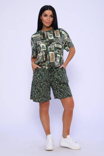 Милый и женственный хлопковый костюм с шортиками. Туника свободная, в области бедер вшита утягивающая кулиска. Шортики с защипами, что способствует более свободному и комфортному движению.