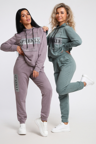 Уютный женский спортивный костюм, который вполне можно использовать для ношения дома, изготовлен из высококачественного, приятного телу трикотажного полотна, состоящего на 50% из хлопка. Комплект представлен в трех практичных расцветках. На полочке кофты и брюках имеется принт, придающий изделию особую стильность. Дополнительным декором кофты служит капюшон, объем которого регулируется шнурком контрастного цвета. Костюм красиво сидит на фигуре, подчеркивает ее достоинства и при этом не стесняет движений. В нем Вы будете чувствовать себя комфортно и уверенно.