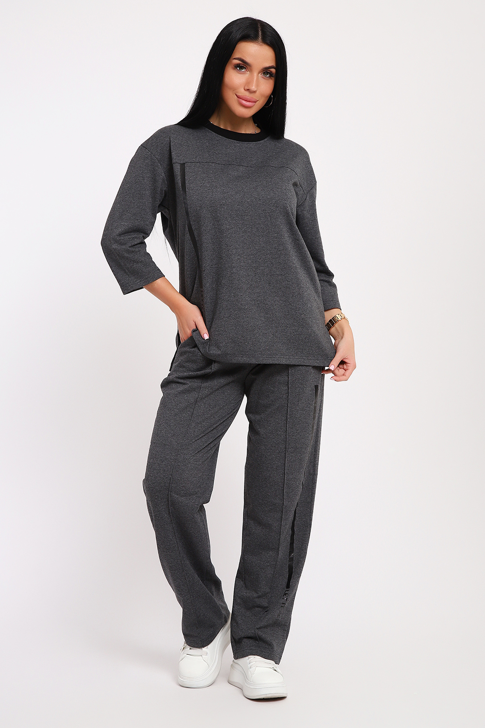 Костюм с рукавами три четверти и широкими брюками олицетворяет все грани моды: легкий, свободный и красивый. Трикотажный комплект создан для отдыха, прогулок и спортивных занятий. Футер двухнитка обеспечивает мягкость и легкость при носке. Рукава 3/4 добавляют изюминку с акцентом на женственность и комфорт. Костюм будет явным лидером вашего гардероба. Отличный выбор, чтобы выглядеть модно и подчеркнуть свой индивидуальный стиль!