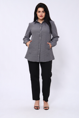 Рубашка с популярным узором гусиные лапки добавит вашему образу изюминку и сделает его более выразительным. Этот рисунок привносит нотку классики и придаёт ансамблю уникальный стиль. Рубашка доступна в двух расцветках: классическом белом и изысканном чёрном. Это позволяет вам выбрать вариант, который будет лучше сочетаться с вашими остальными вещами и подчеркнёт вашу индивидуальность.