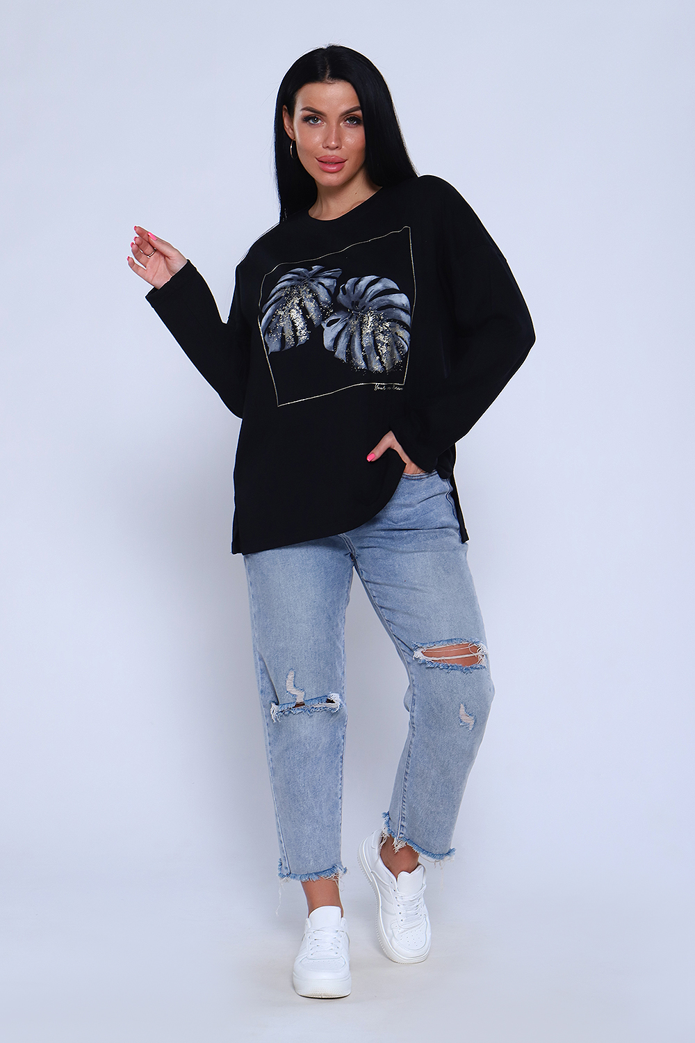 Женский лонгслив из кулирки 100% хлопок , плотность 160г. с принтом и разрезами по бокам . Выполнения - модный и стильный выбор для современной девушки . Вариант как для повседневной носки.