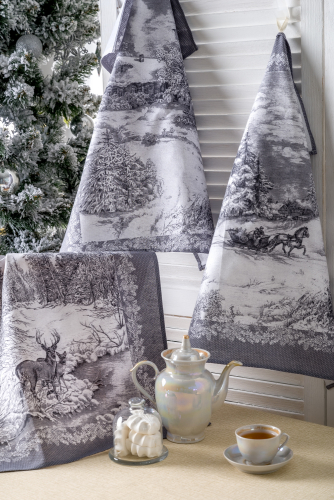 Праздничный набор из трех полотенец создаст настоящую сказку на любой кухне. Вафельные полотенца размером 60*48 см с Дедом Морозом и снеговиком будут поднимать настроение каждую зиму. Каждое из трех полотенец имеет неповторимый рисунок. Для удобства использования к каждому полотенцу пришита петелька.
