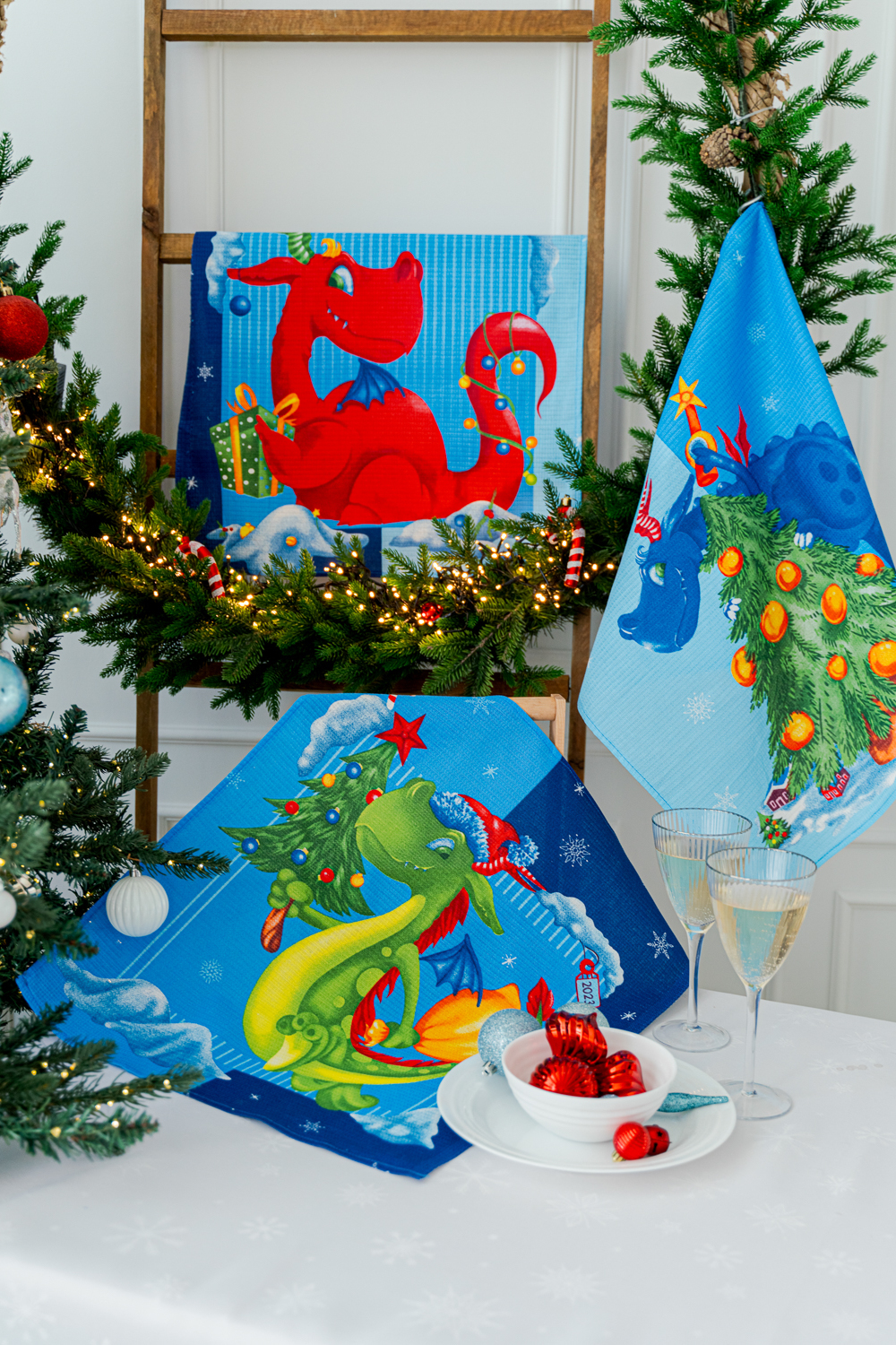 Кухонные полотенца Веселые драконы с символом 2024 года создадут волшебную атмосферу дома, а так же прекрасно подойдут для подарка родным и коллегам. Такие полотенца идеально впишутся в любой интерьер и подарят праздничные эмоции!
