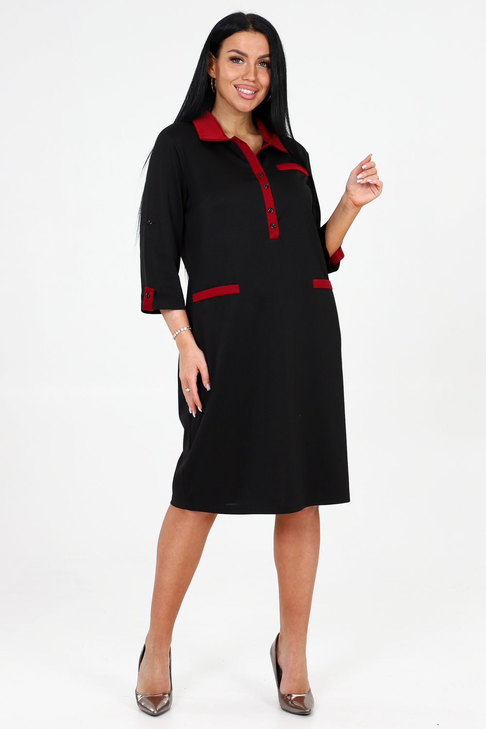 Женское платье прямого кроя с рубашечным воротником: элегантный выбор с неповторимым стилем! Изготовленное из высококачественной ткани академик, это платье обещает комфорт и стиль, сочетая в себе классические и модные элементы. Полочка платья украшена планкой с декоративными пуговицами и нашивной имитацией карманов, что придает ему неповторимый и утонченный вид. Рукав три четверти добавляет легкости и женственности к этому стильному наряду. Платье представлено в двух великолепных расцветках: черной и бордовой. Черное платье придает изящность и элегантность, а бордовая расцветка добавляет нотку роскоши и страсти. Вы сможете подобрать тот оттенок, который отражает вашу индивидуальность и выразит вашу неповторимую эстетику. Идеально подходящее для различных мероприятий, от офисных встреч до вечерних походов по ресторанам, это платье будет привлекать внимание и подчеркивать ваш безупречный вкус.
